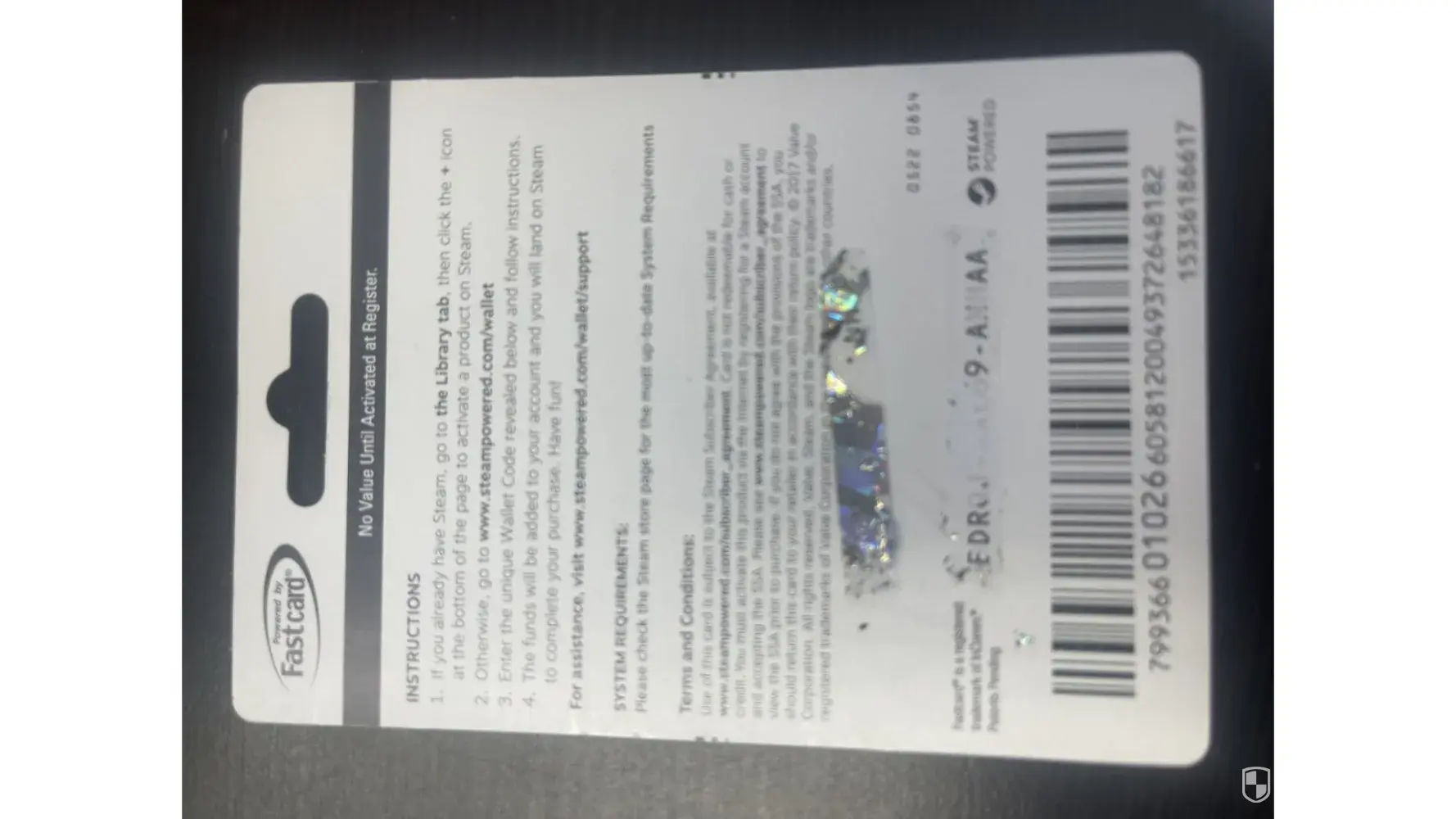 Defective steam gift card