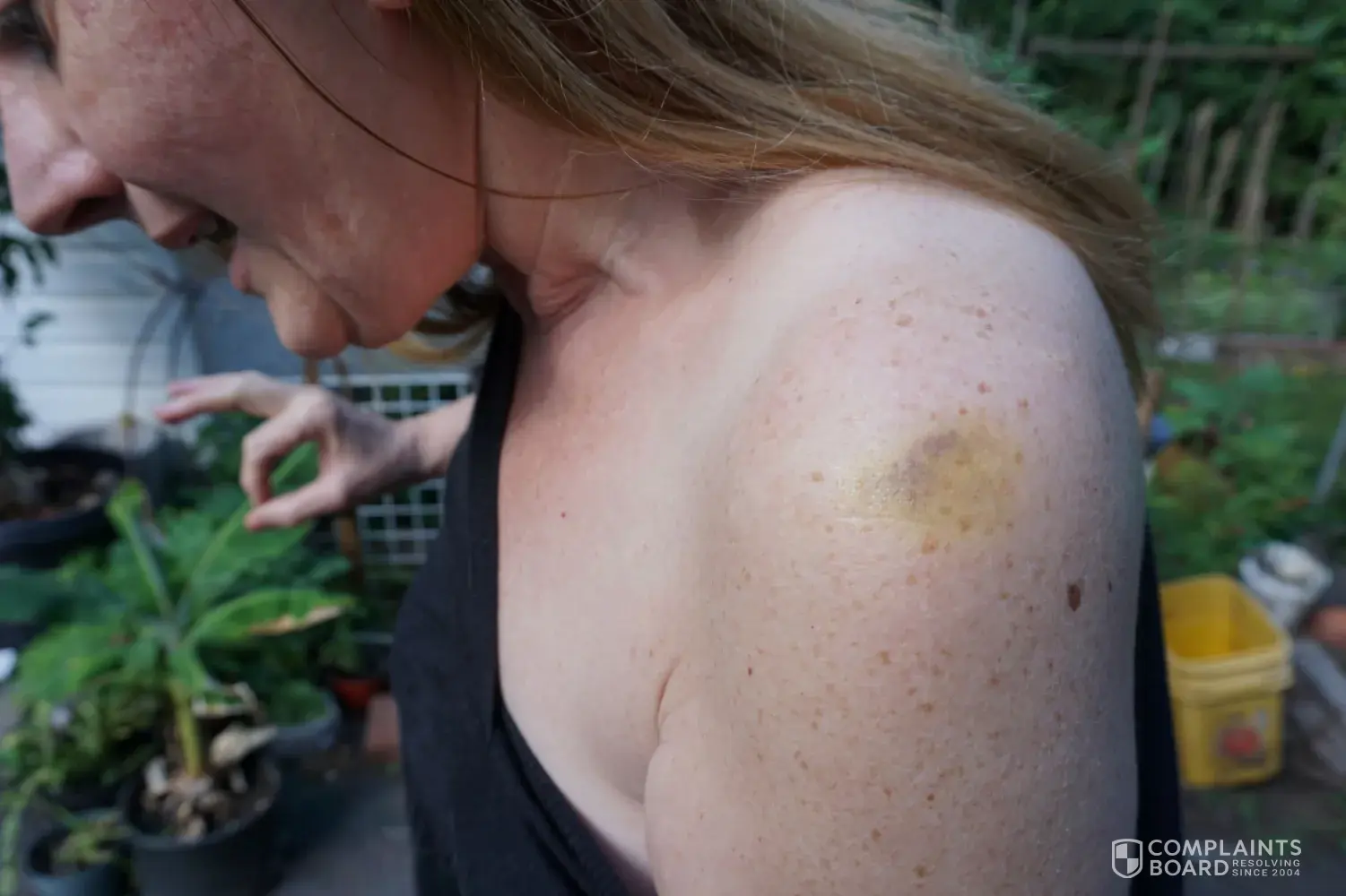 incident/injury happened June 16, 2021 TVR (95) : [protected] if this is my number... I went for a Tetanus shot, but the Pharmacist convinced me, that I could have my Pneumonia shot at the same time, so I agreed. He had me seated, and while he was standing, he gave me his first shot instead of the deltoid muscle, right under my humerus (shoulder) bone...