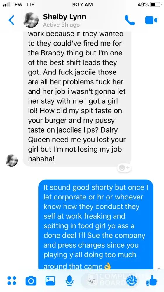 I am reporting the manger Kelsey Collins at the Dairy Queen in Robinson Illinois for being very rude to her employees in front of the costumers. She is also not a very nice worker herself, and whenever she took my order, I was very unpleased with it so I asked around to more Robinson Illinois people and they said that they have had the same problem with Kelsey Collins. I've also heard that David renshaw the owner of the Dairy Queen in Robinson don't really say a lot to Kelsey that's why I am contacting you guys directly