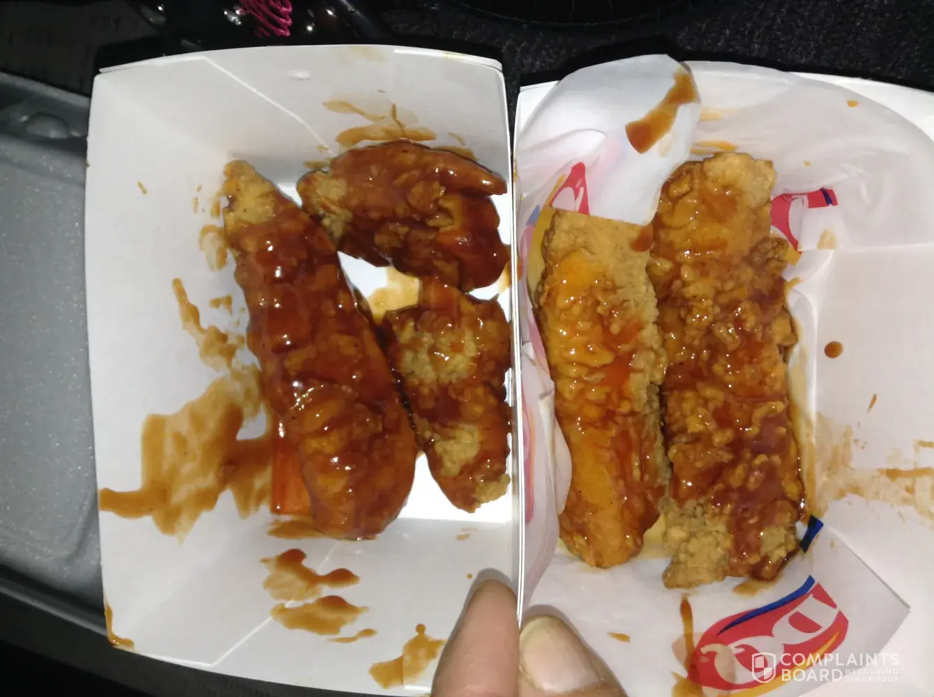 The first store assumed I wanted the 'combo' without asking and then sauced my chicken strips so much that there was 1/2" in the bottom.
