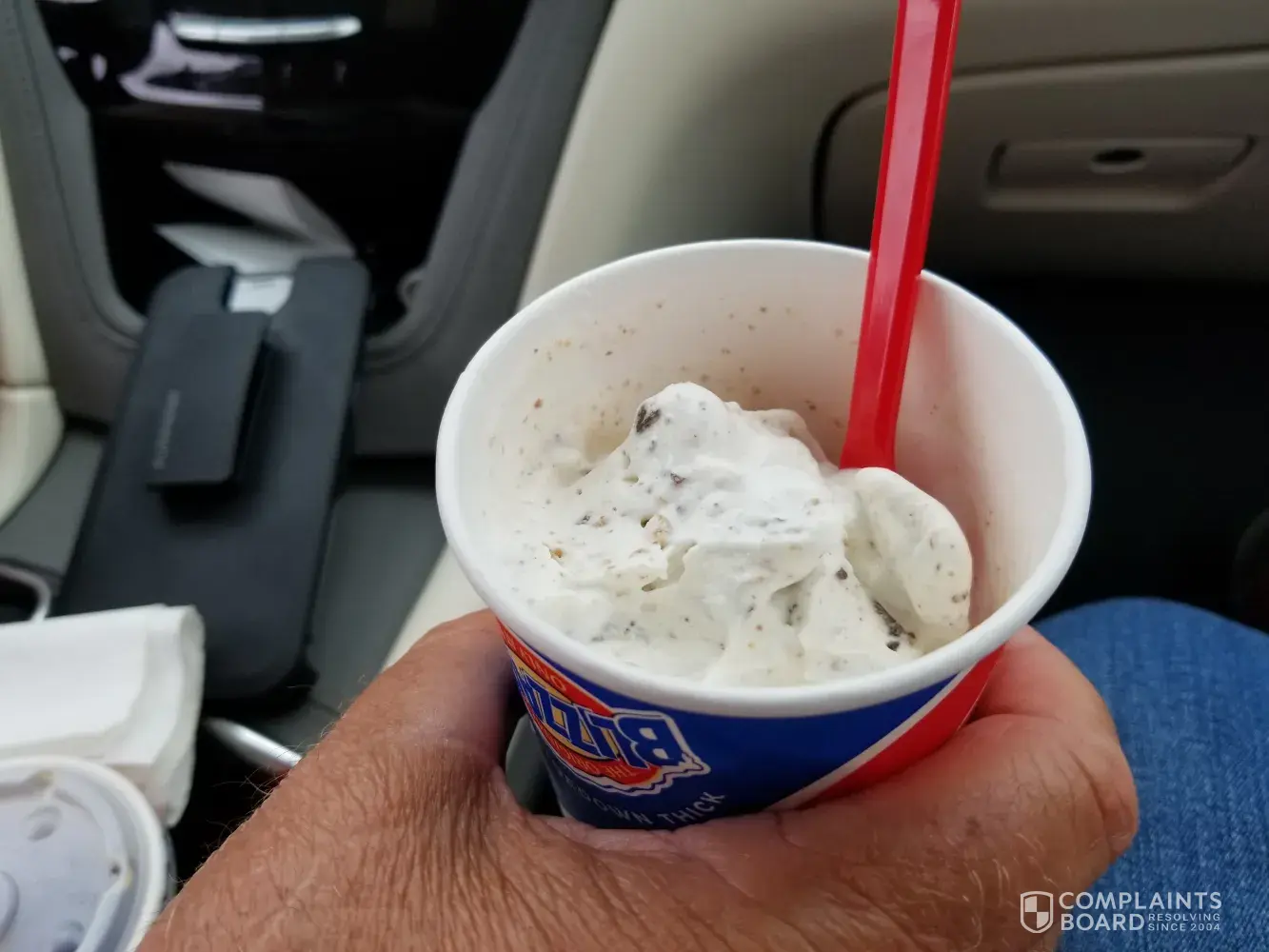 Incident number 4 (the final straw): I had already internally boycotted DQ, but my friend didn't have a car and she wanted to go through and get a blizzard. We went through, and YET AGAIN, the whole blizzard dumped out onto the parking lot.