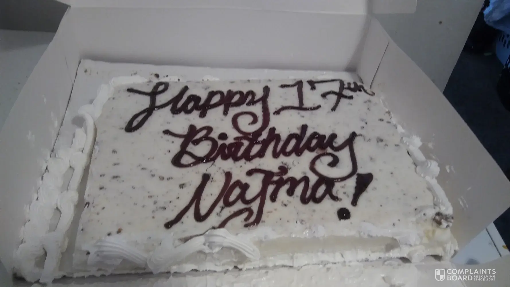 I am reporting unethical behavior by a Franchisee. I ordered a Recess Blizzard Cake online three days in advance of when it was to be picked up. I was personally unable to pick up the cake, so I had my sister do so for me. When I finally saw the cake I was disappointed (the pictures are below), the cake looked nothing like the photo online. When I called the store manager (named Haley) to express my unsatisfaction, she stated, "The cake looks like it does online." I went on to explain that it looks nothing like the online picture and that it looked awful, so much so that I wanted a replacement cake or a full refund for the uneaten cake. Haley went on to tell me that she was unable to process a refund for the cake without the owner's permission since it was a Blizzard cake. I asked her to call the owner and get back to me. When I spoke back to Haley, she informed me that the owner said if I returned the cake I could only have a $5 refund for an uneaten cake that cost me $34.99 or I could go back to the store across town and they would add some decorations to the cake I already purchased. I found the answer from the owner to be incredulous. When I asked for the number to call the owner myself, she stated that she was unable to provide his personal information (which I can understand). So I then asked if she could call him while I was on the phone to which she stated, "no." Then I asked if she could call him on the store phone upon me returning the uneaten cake, so he could tell me why I could not have a full refund for an uneaten and untouched cake. To this, she replied that it would be unprofessional for her to call the owner while I was in the store.