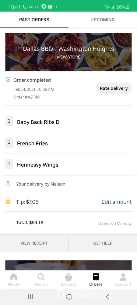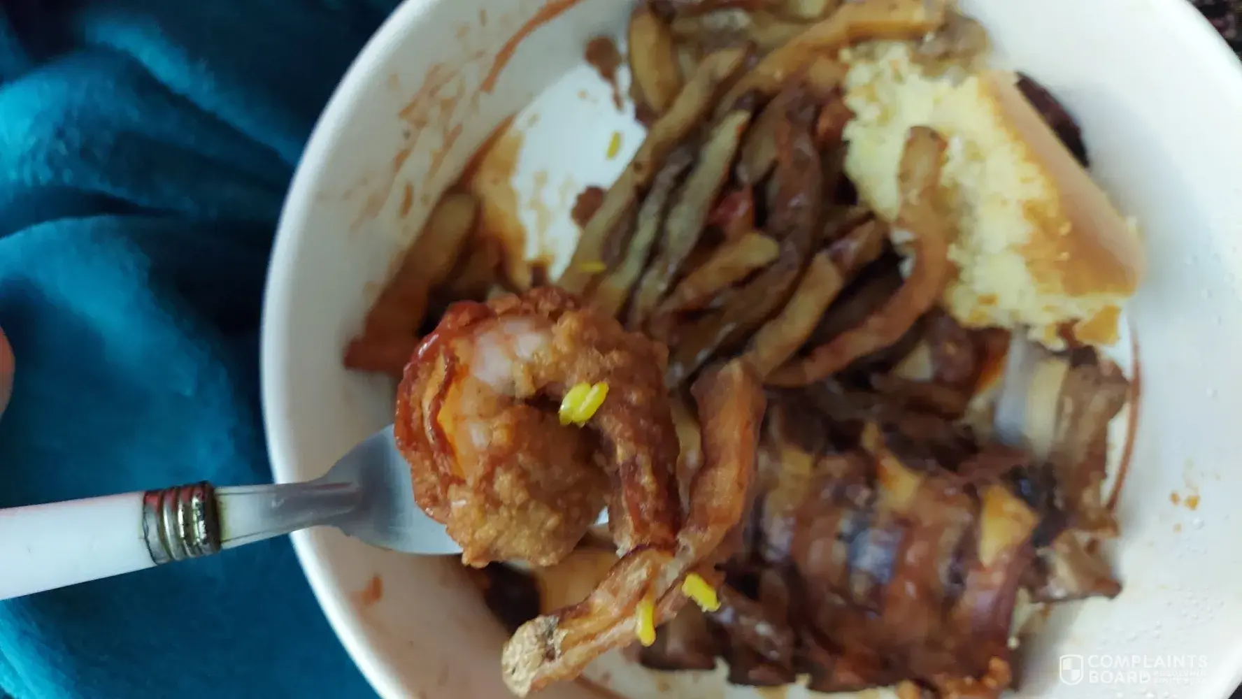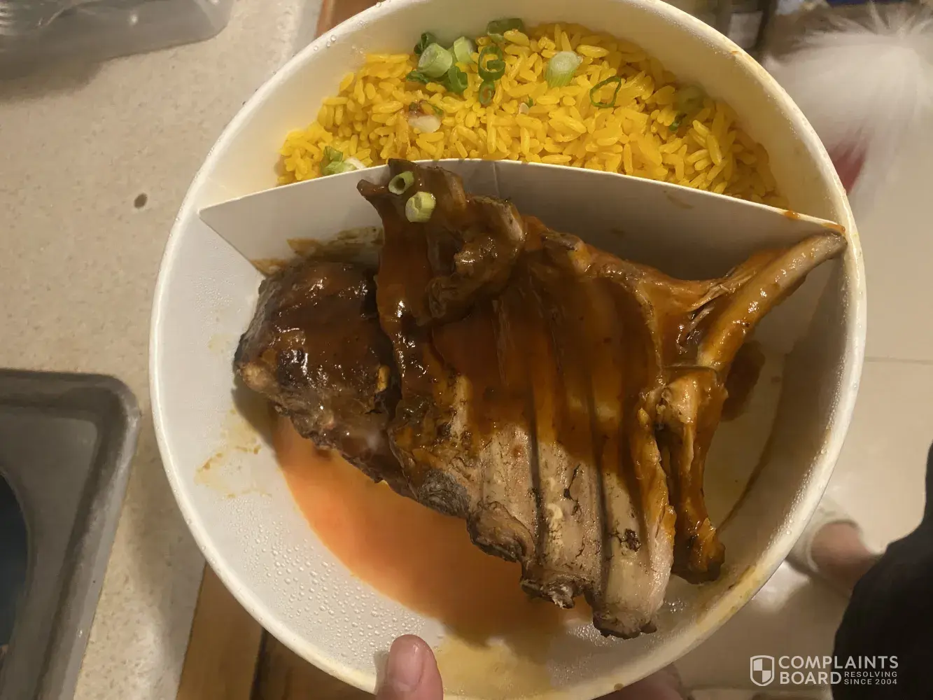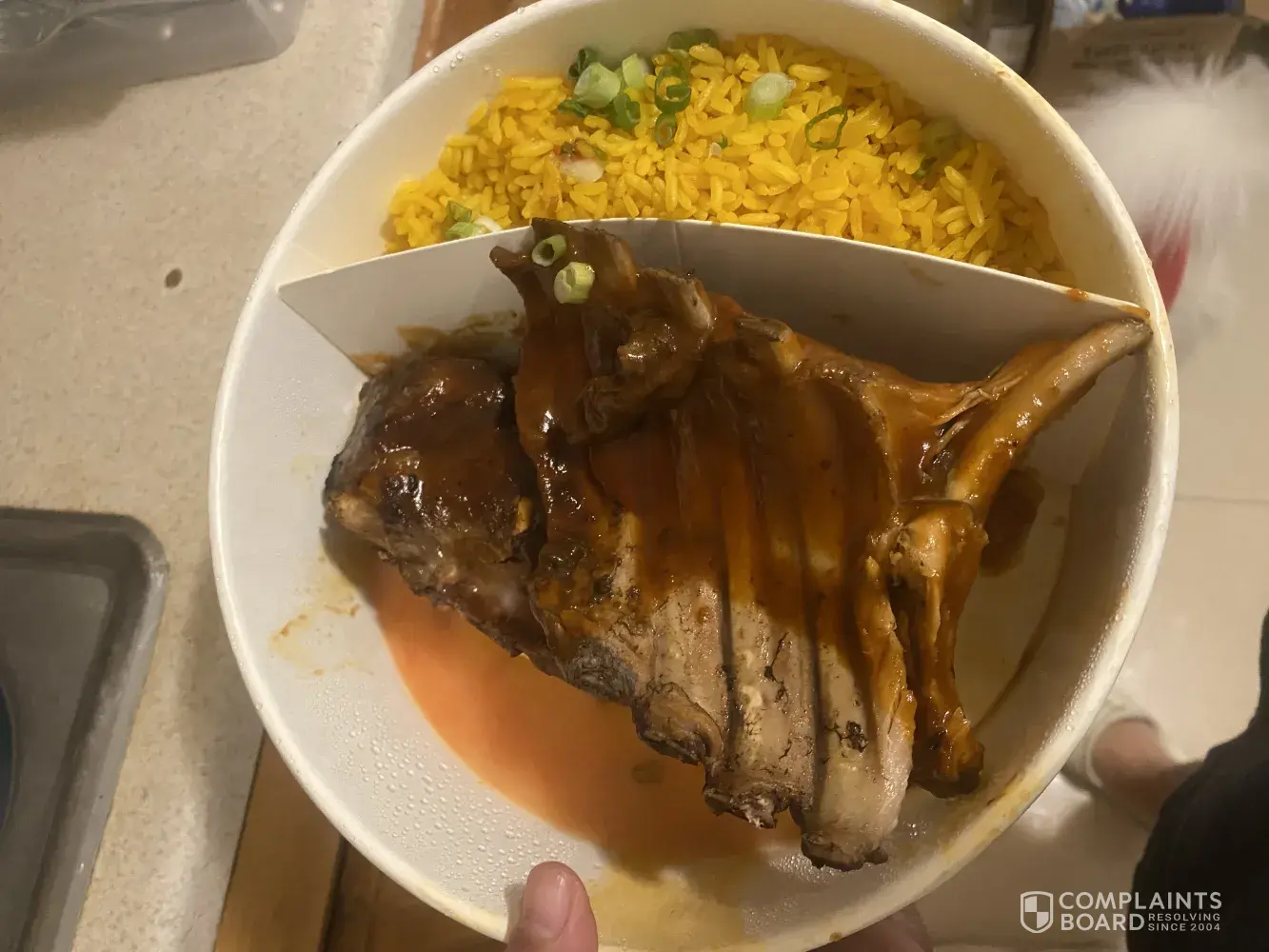 First the order was way to messy. They took so long to delivered the order (almost 2hrs). The baby rips that I ordered had a shrimp inside with rice stick on it (like from a left over order) so disgusting and with this Covid 19 going around even dangerous. The fries looked like old. I paid 54.18 on Uber eats for this order and I demand a refund (minimum). Please. This is so bad.