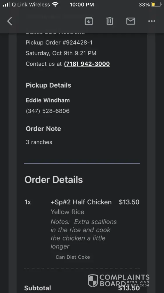I didn't think to check the food because of all the high ratings I hard about you guys. Then I ordered a large ranch to go they gave me blue cheese. This was a $60/$70 meal that went down the drain and had to buy us all food again. I have one of the receipts left but the other one was attached to the bag that I tossed. Hopefully you can help me with some kindve credit or something because that was unacceptable. Contact me at [protected]@gmail.com or by mobile. [protected]