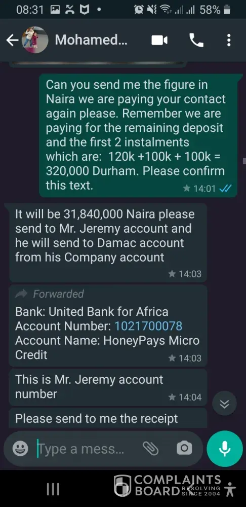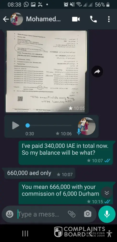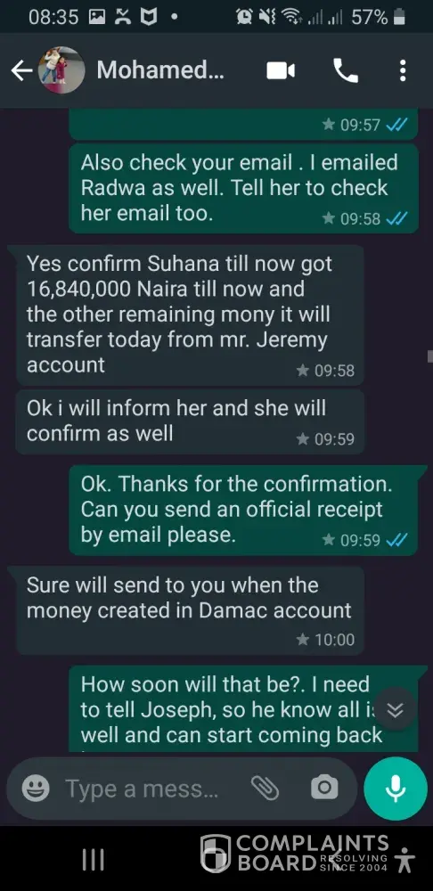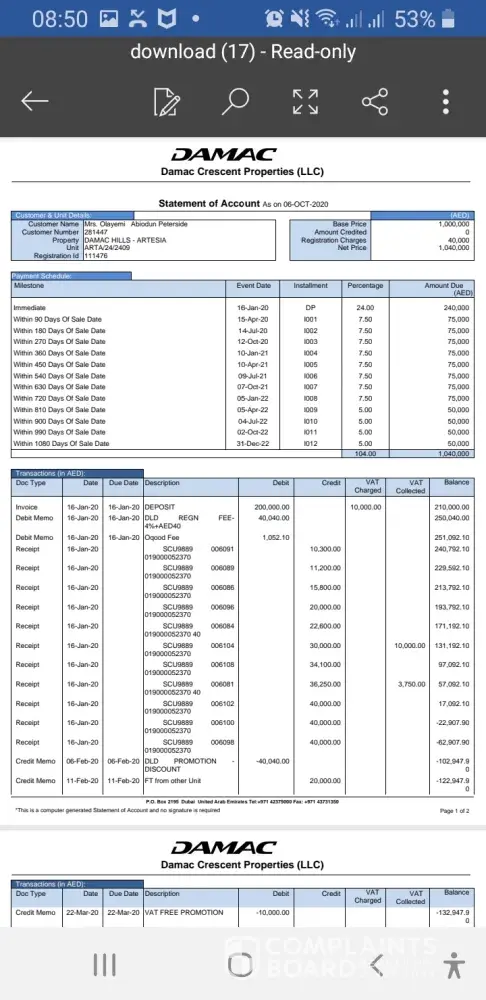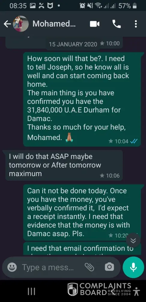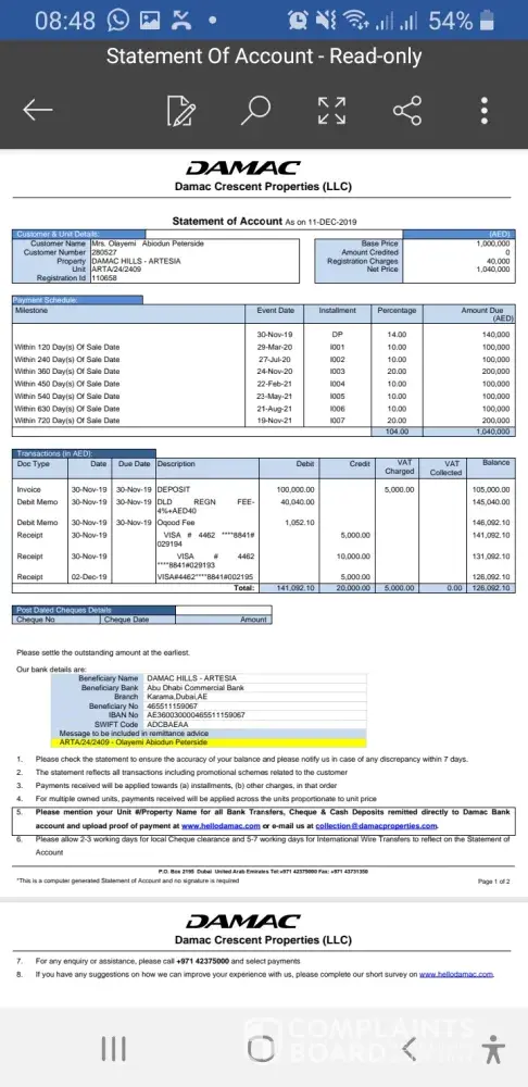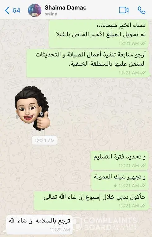 - So, as a conclusion I was a victim of deception from both Ms. Shaima and Mr. Omar [Official staff of DAMAC] since the beginning as I kept receiving fake promises from them.