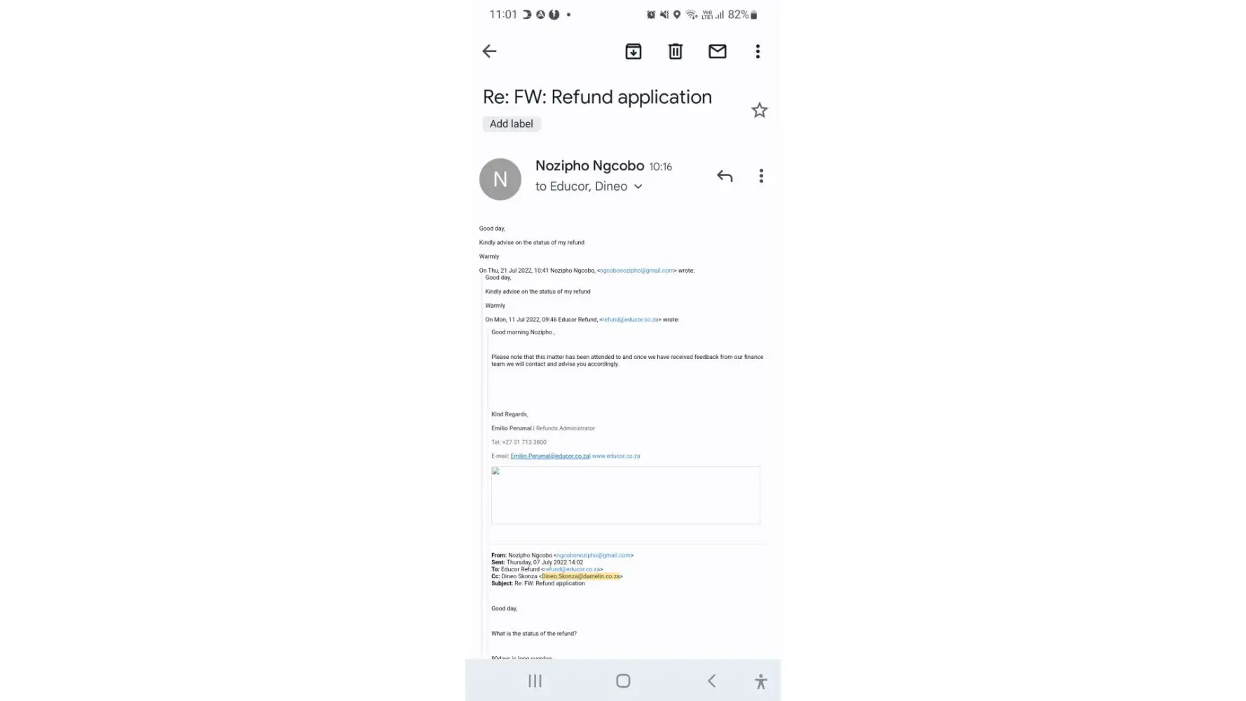 Once again on the following dates but still got ignored,15 October 2022, 03 October 2022,04 August 2022 & 23 June 2022. All these emails sent to [protected]@damelin.edu.za, [protected]@dcc.edu.za, [protected]@dcc.edu.za. The last staff member I spoke to promised me that it will be sent to me via email and original sent via pep stores near me because I completed all that information when I submitted my award request. This is by far the most awful horrible service I have ever got from learning institution. It costed me my job last year since I couldn't provide them with my proof of qualification.
