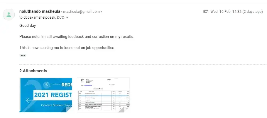 My nightmare began back in 2019, when I received my very first statement of results and was slapped with a failing grade because of not submitting an assignment. Keep in mind, that Damelin will not permit you to write exams if you have not submitted your required assignments. I also had received my results for that assignment, so how could I not have submitted it?