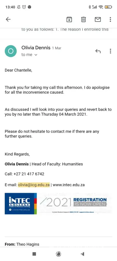 We have written seveal emails and had many calls to Damelin to resolve outstanding Results and outstanding assignments. Damelin continue to deduct mony fees, but fail to provide the paid service. Empty promises from Olivia Denis, Head of Faculty. She made a commitment 01 March and agreed to provide urgent feedback on 04 March on all outstaning queries, but today Damelin blantley inore my calls even when leaving messages.