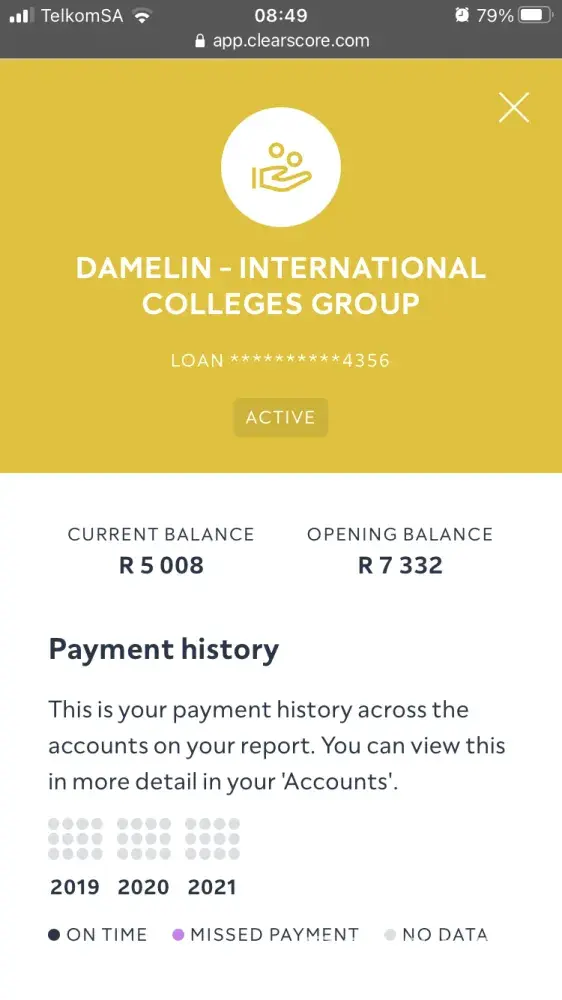 I had paid a R5000 deposit and thereafter made monthly installments until December 2020, which means that I have completed all payments due owing and payable to Damelin.