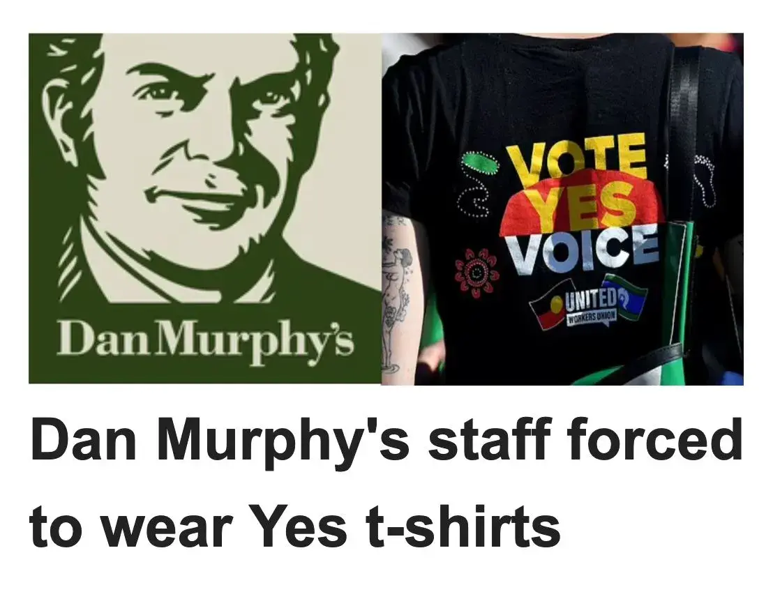 You are Dan Murphy staff wearing YES t-shirts for the vile disgusting apartheid Marxist do is I've voice campaign. Because of this I will no longer be supporting Dan Murphy's anymore.