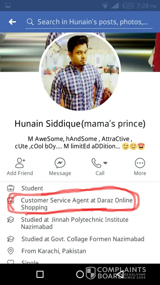Then on the next day i complained on your daraz helpline number.They told me that " delivery status of your product is not updated so please wait and make a call after 24 hour.