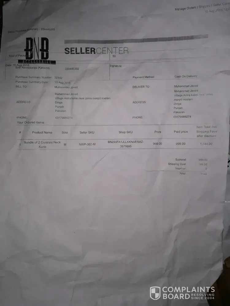 You are no doubt a certified trusted online shopping site but some of your sellers are breaking our trust to shop from u. yesterday i recieved my a parcel of BnB accessories which is totally different from the order i reserved. it is really disscussting. i have paid 1198/= rupies for 3 t-shirts but recieved very bad quality cheap tottaly different shirts. kindly take notice of that and change my order other than my suggestion will b not to shop from u to every1 i know.