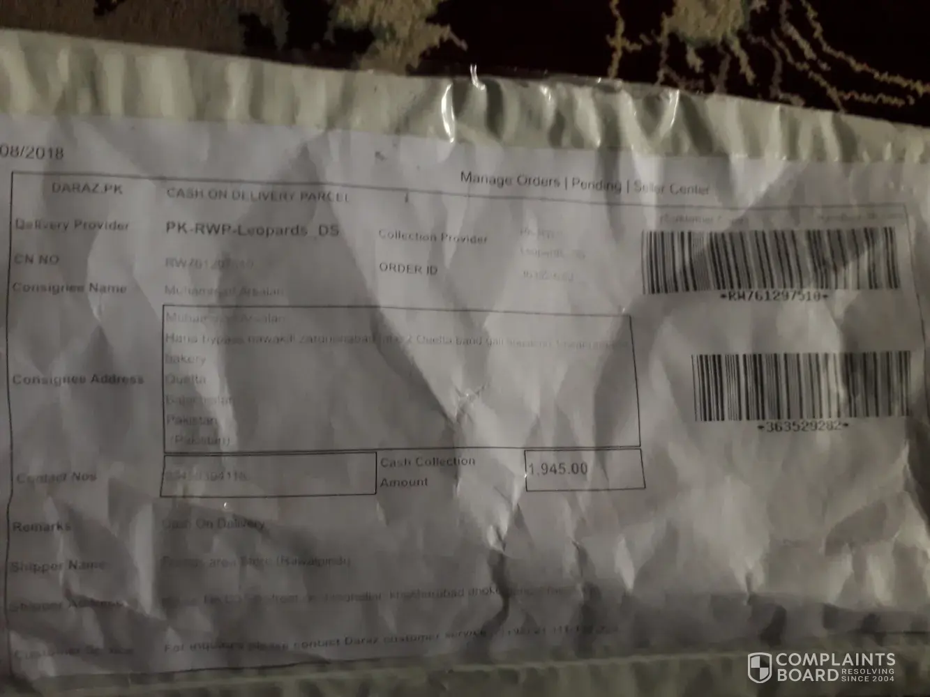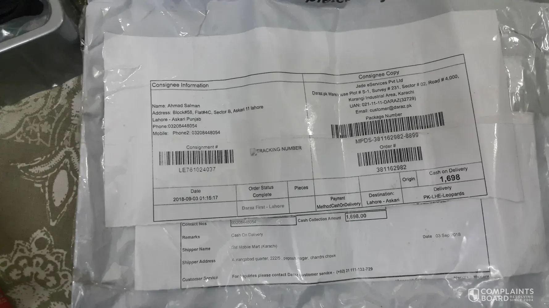 I ordered three items on Daraz.Pk online