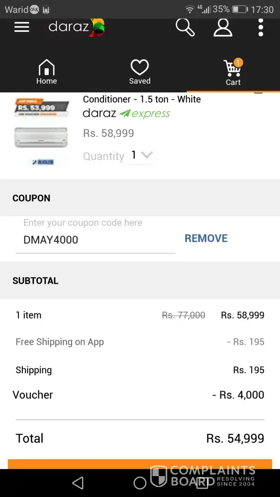 It is to highlight that, I had opted for kenwood dc inverter 1.5 ton. Who's actual price was 59, 000 and daraz had given app voucher price of 53, 999. But actually it had not been happened as per app scheme.