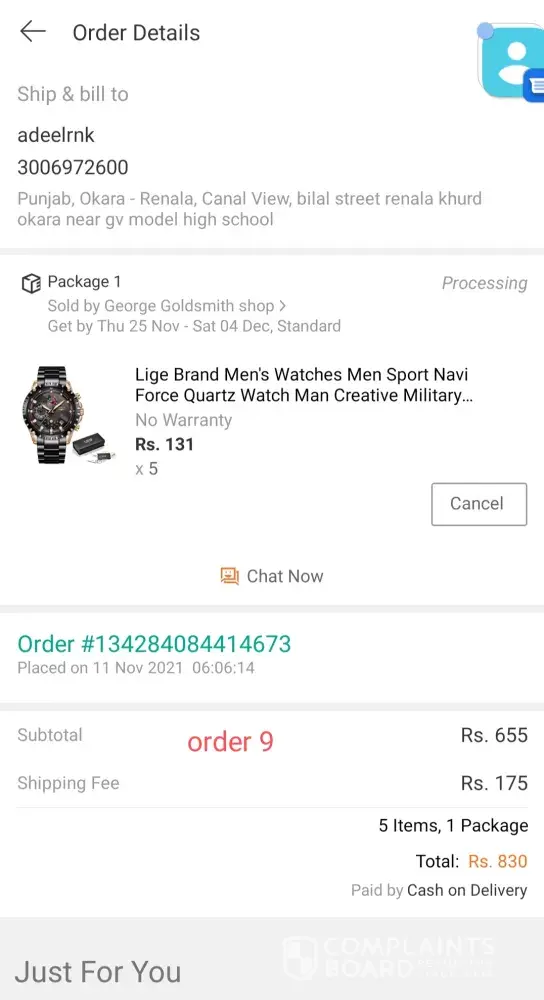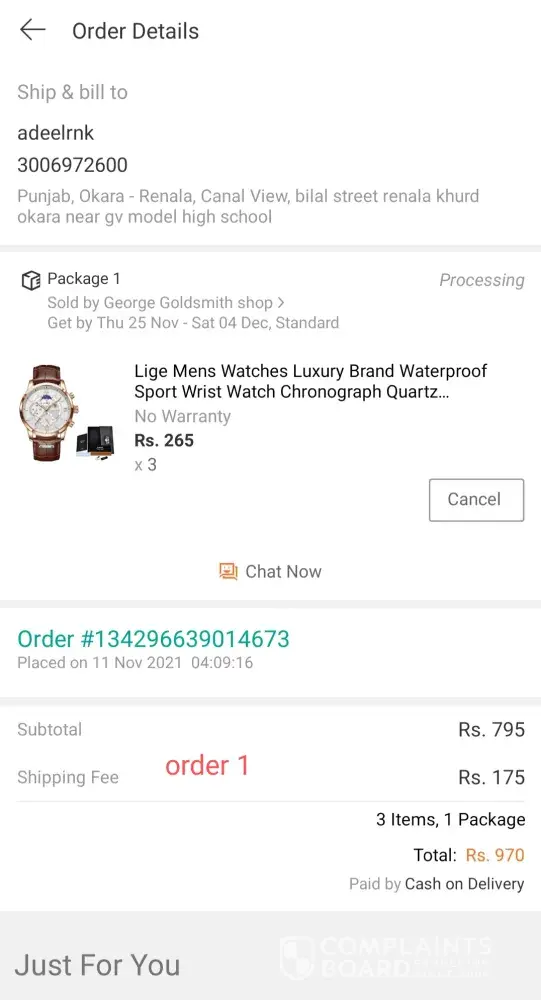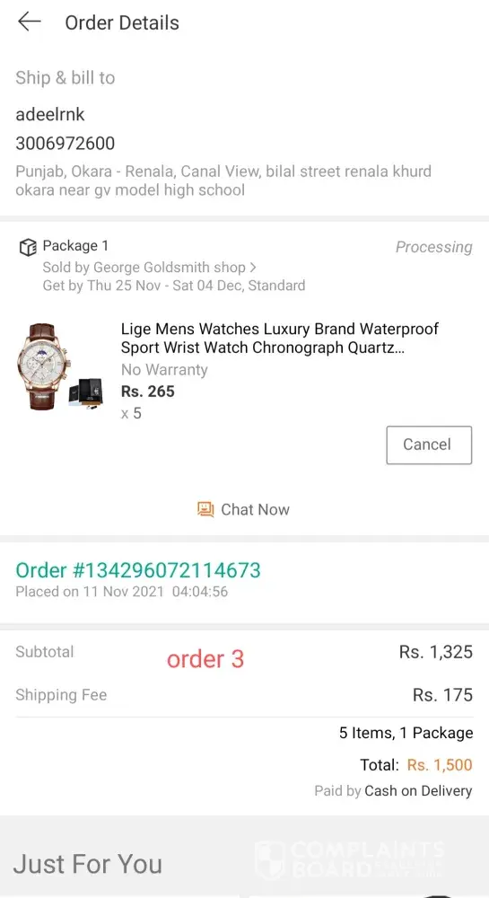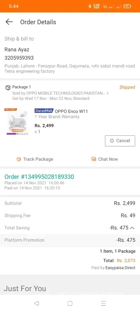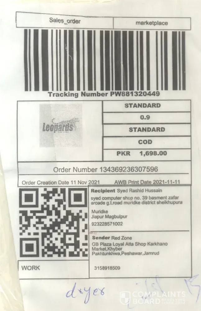 I placed my order via Daraz app which was received by my TCS office Nawabshah City on Saturday 23/10/2021 and I requested the said office to kindly provide the stuff in time (Call History screen shot is provided).