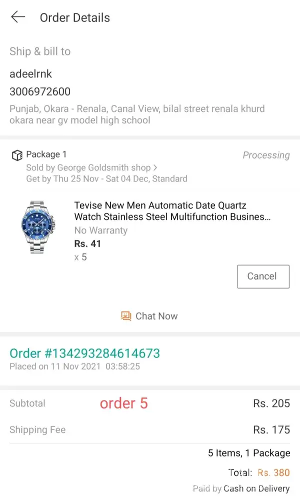 Fallow my talk I buy all items on draz sale after I confirm 5 times about my 55 to 60 watches order draz confirm me my orders with shiped status with shipping numbers I am adwance bookin some people after confirmation they all people asked about watches deal I am in center truble my lose pay draz why cancelled dont accept any person after 14 days there is all juniors on chat help I want talk senior person