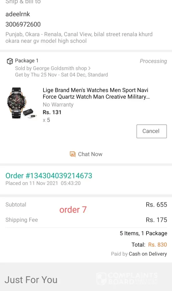 It's therefore requested to cancel my order and also Make sure that The Said TCS Office Nawabshah delivers the stuff in time to other customers especially Iftikhar Shah employee, a very irresponsible person and misfit for the job