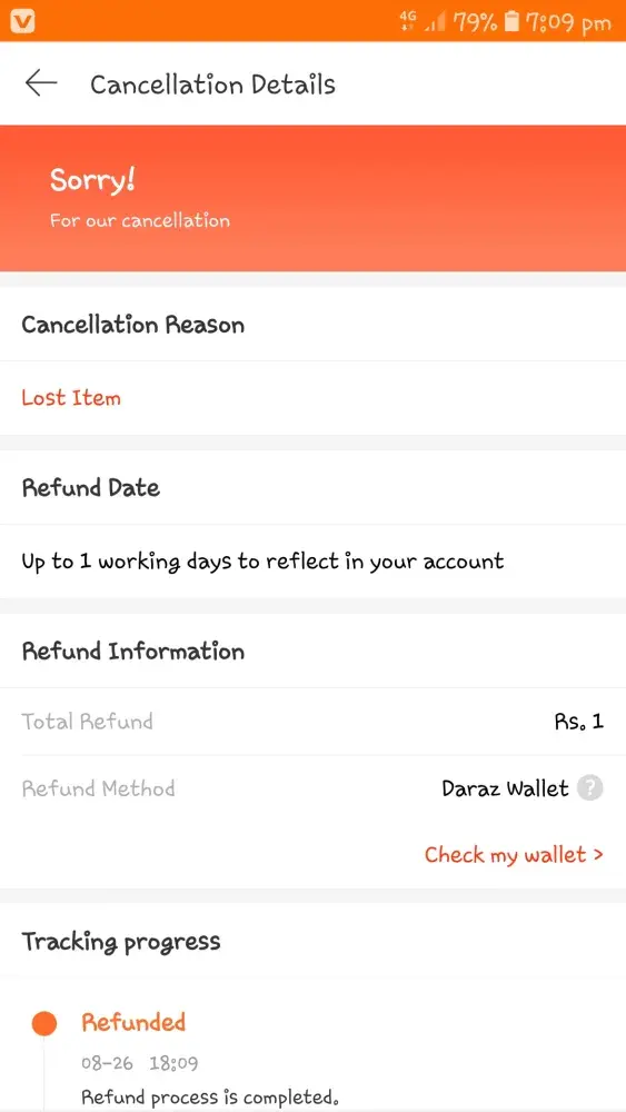 They cancelled it and refunded my money in daraz wallet, but now I cannot withdraw money from daraz wallet to my bank account. It always shows an error and bug when I try to do so.