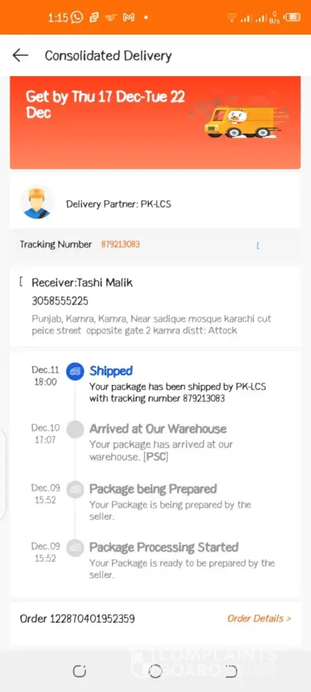 My order placed vide # 122283246423205 for tab. I have been contacted from cell 03093239607 (home vella sign) he told me that your parcel will delivered to you within 03-days. I have received that parcel from lcs courier after a payment of rs.22500/-. Tab received me found defective its made of china language is coming japanese by default. I have contacted the provider on his cell he given whatsapp message about this in detail. He promised to change & replace. Now he is not attending the call and given the response. I request to to kindly look in to the matter and probe what is the matter either they directly delivered the product on your behalf by passing your order and resolve my issue.