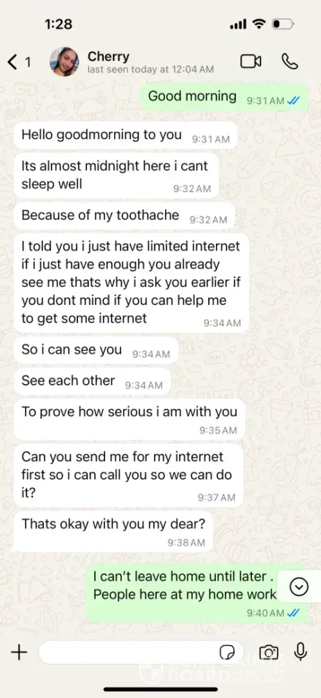 He uses a someone's video upon having a video call with voice over. He ask money for his birthday but he can't never scam me.