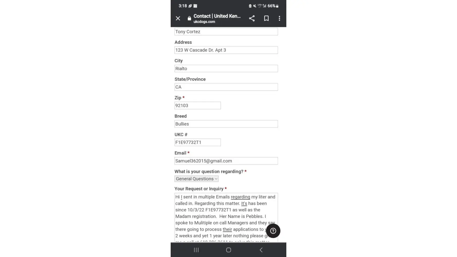 I filed for a litter registration back in October 2022 not realizing that the Madame wasn't registered was told to send in her information which I did. called in 2 weeks later which I was later told that everything was going to be processed and sent over for review to please give them end of business day to process and have sent out. Ive spoken Tiffany...