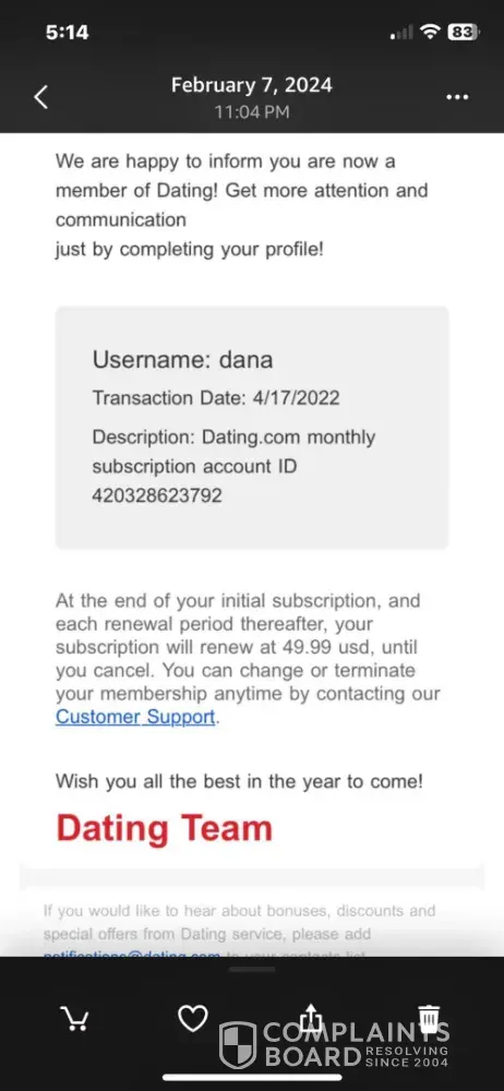 This complaint was never resolved. That’s a lie and they are really good at lying to people. I let it go for my personal reasons. Don’t be lied to and manipulated by this dating app. I hope they shut them down for laundering money and playing with people’s emotions. The owner is from Cypress and he is a billionaire who lives on an island off the coast of Italy. He has made a fortune off people’s feelings and emotions. Just look for Robert Wilson on Facebook. He used to work for them and he is outing what goes on with dating.com and its other dating platforms. They own no telling how many dating platforms the ones that I remember are Hotti, Amolatina, Girlsonlydating, YourTravelmates, DateMyAge, And many others I’m guess they own around 30 to 40 dating websites. All of them are running on the credit system. You have to buy credits to do anything on their website. It’s very expensive and they will ask for virtual gifts and real gifts to make sure you buy as many credits as possible. In the USA it’s $100 for 160 credits, $150 for 600 credits and $399 for 1500 credits and that’s with the price of renewing your membership every month. It’s even higher after you use your membership credits. But my point here was that this was never resolved and they are lying and manipulating people. I’m the one who wrote all of this complaint and I just stopped contacting them because they will never admit to any wrongdoing. I have a friend in Colombia who is a model. Amolatina tried to hire her for her photos. She turned them down because it wasn’t honest work. So that tells you a lot about the dating platforms they have. BUT THIS WAS NEVER RESOLVED TO MY SATISFACTION AND THEY ARE LYING TO YOU.
