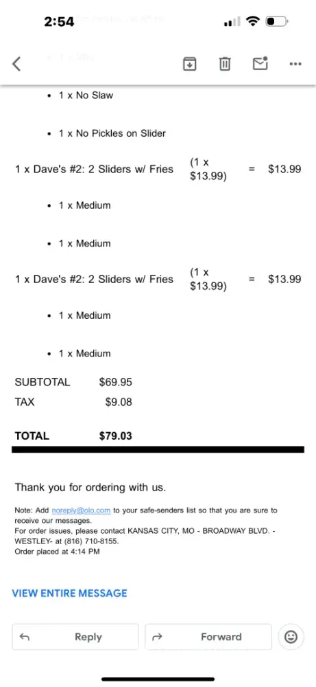 The app is great overall. I would suggest they make the red border for menu selections bolder. The thin red line is so small it’s easy to miss an accidental selection/omission in a long order.