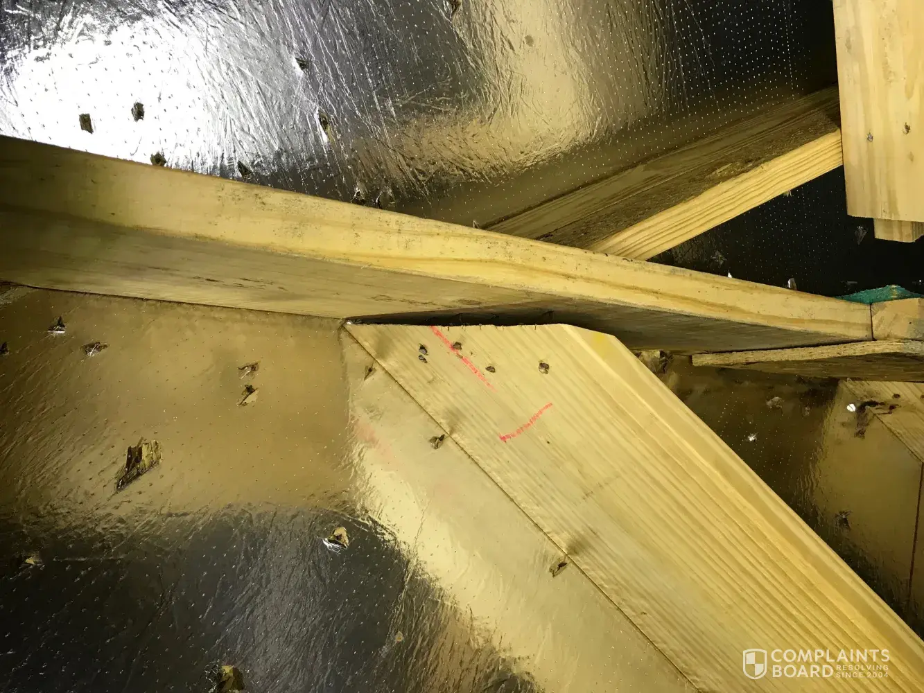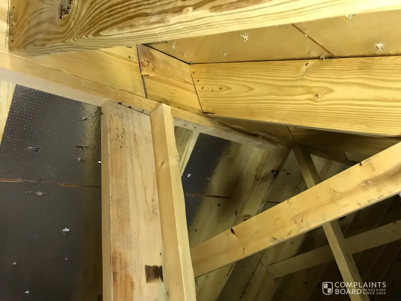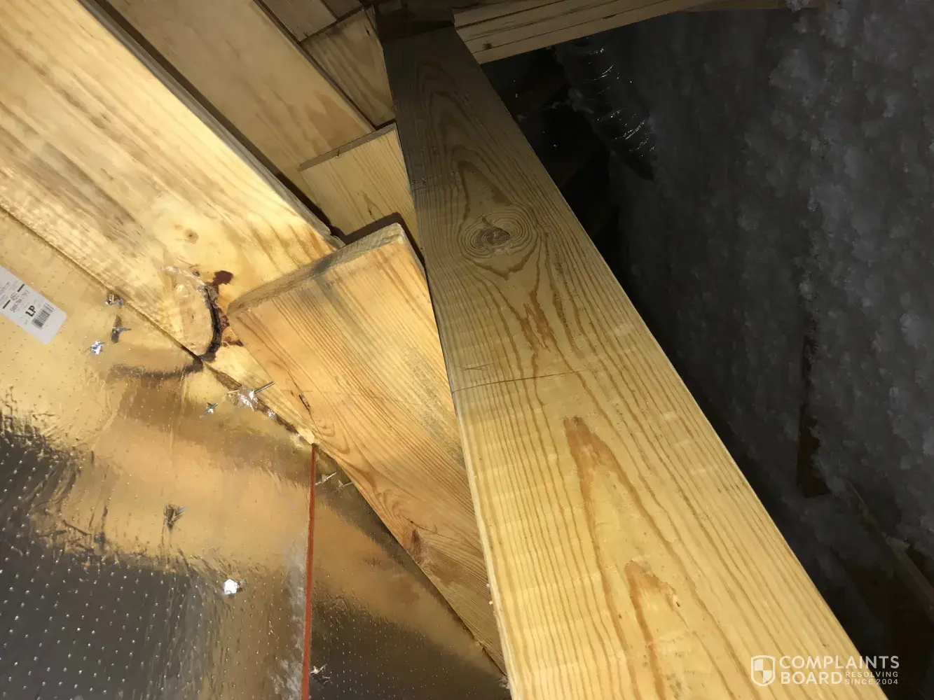 Not only have we flooring problems, but the AC duct wasn't put in properly and was leaking into the attic. We had to have total new duct work added and a jump vent put in at the top of the stairs. The upstairs was staying so hot in the summer and not cooling. This was also a health risk with the AC pouring into the attic. Talk about Carbon monoxide poisoning! This summer we will have to replace both outside AC units and get one much larger one for the upstairs.