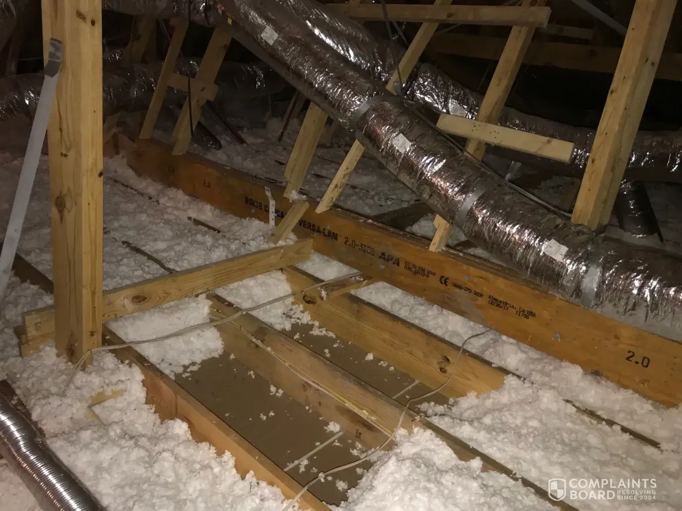 And the most awful is someone urinated in my attic's insulation . Very frustrating . I've contacted the warranty manager, project manager, and corporate about all these issues and have been promised many times that all will be taken care of but as of today, 5 months after closing, many of my concerns and issues have not been resolved all and no attempts by David Weekley to resolve these concerns.