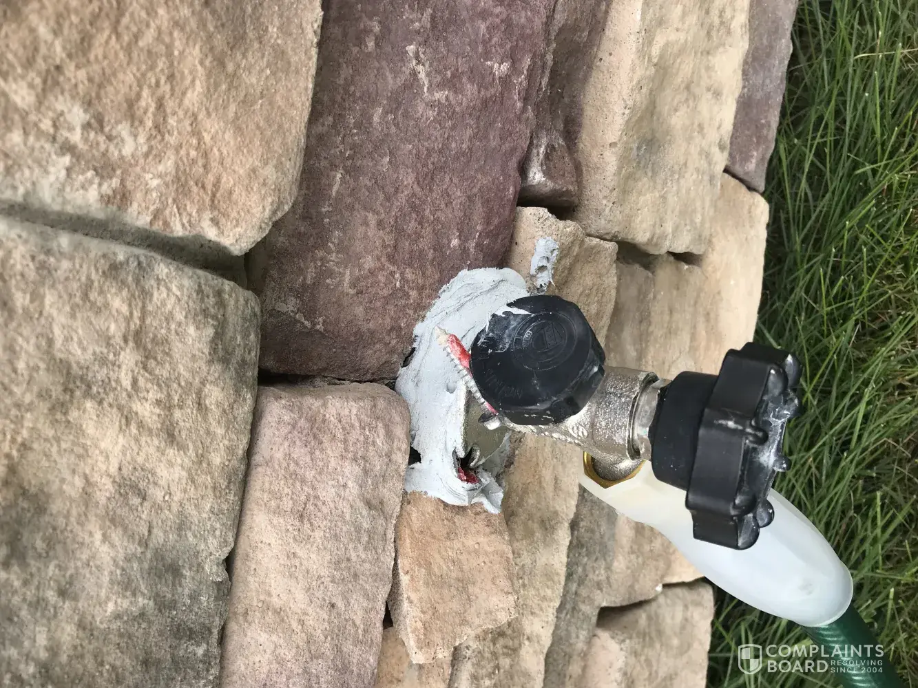 4) hose spouts leaking falling off the house and "repaired" with caulk that looks terrible and continues to be loose