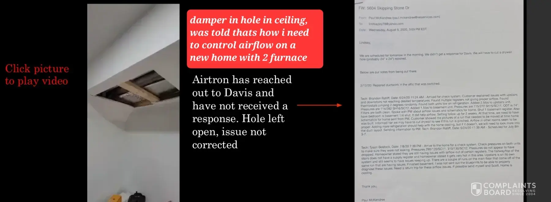 To make matters worse, they gave Airtron the wrong blueprint of our home, resulting in the furnace being placed in the wrong spot in our basement. This took up valuable space that we had planned to use for our business working area. It also means that we can't have an extra bedroom in the basement, which would have increased the resale value of our home.