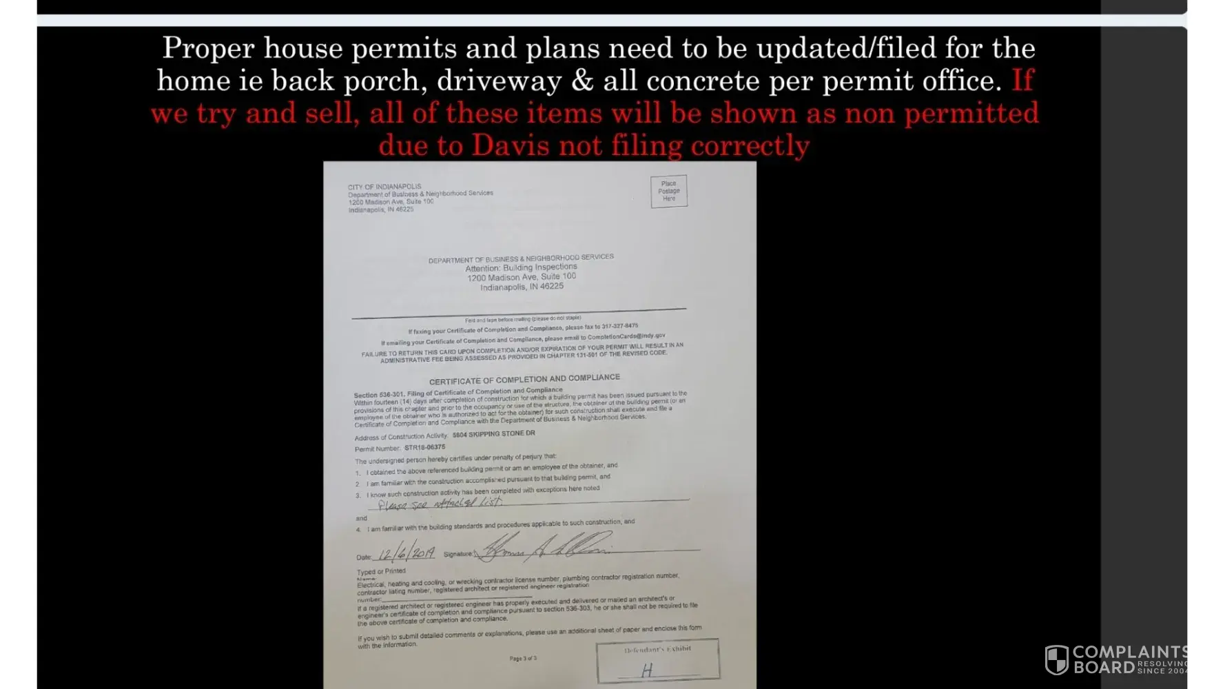 NOW DAVIS IS MOVING FORWARD WITH FORECLOSING ON OUR HOME DUE TO A $19K MECHANICS LEAN YET OUR HOME HAS ALL THESE ISSUES THEY REFUSE TO EVEN LOOK AT.