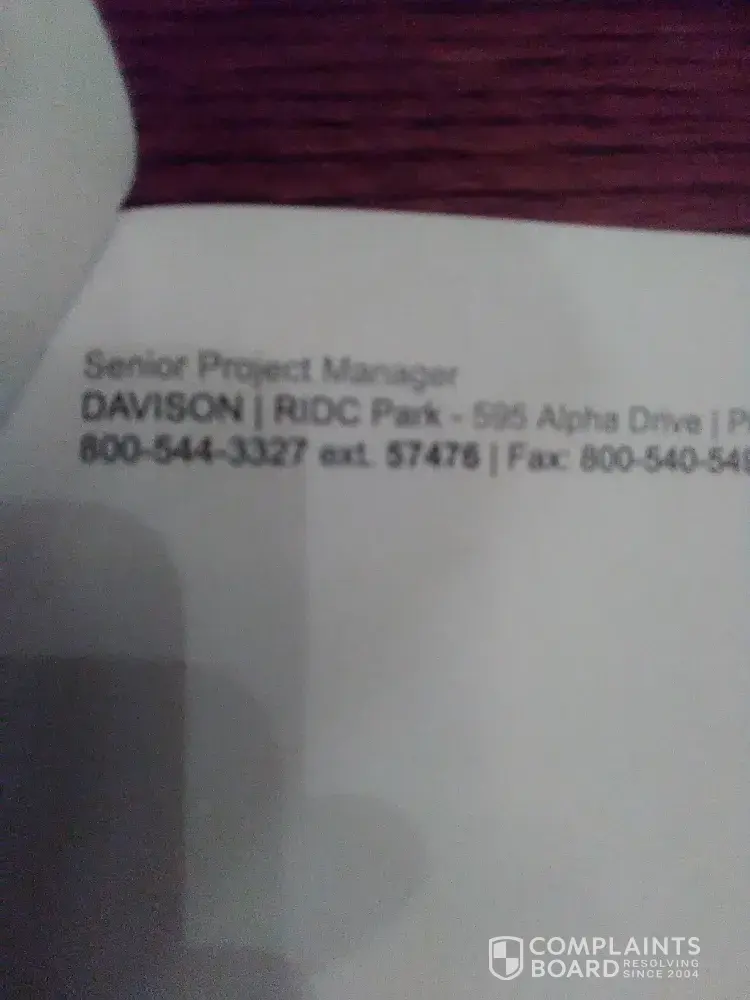 Davison and I had an open line of communication until they received north of $12, 000 after that I'd have to leave countless messages. Ted Morse Sr was the director for my project but he was never available. Jeffery Sawyer the executive Vice President took over the project he wasn't much better. He eventually passed us on to Barbara Browning who referred us to Matt Alwine. Bottom line they never made the prototype they sent my homemade video to the Corporation. The corporation told them that it was not protectable from a patent standpoint and they were concerned about the safety of it. And the product appeared to be in early stages of development and would take a significant amount of time to get it to the market. I had to call the corporation to get this information Davison would not elaborate on the corporation decision to decline my product. They only told me the targeted company is not interested at this time. They never mentioned the fact that they didn't send a prototype which in my belief they never produced. I called Davison to ask a rhetorical question (why did you say the corporation decline my project)then told them the answer and they were mad. They then ask me did the corporation tell me that cause if so that was a breach in contract and they could never do business with them again .