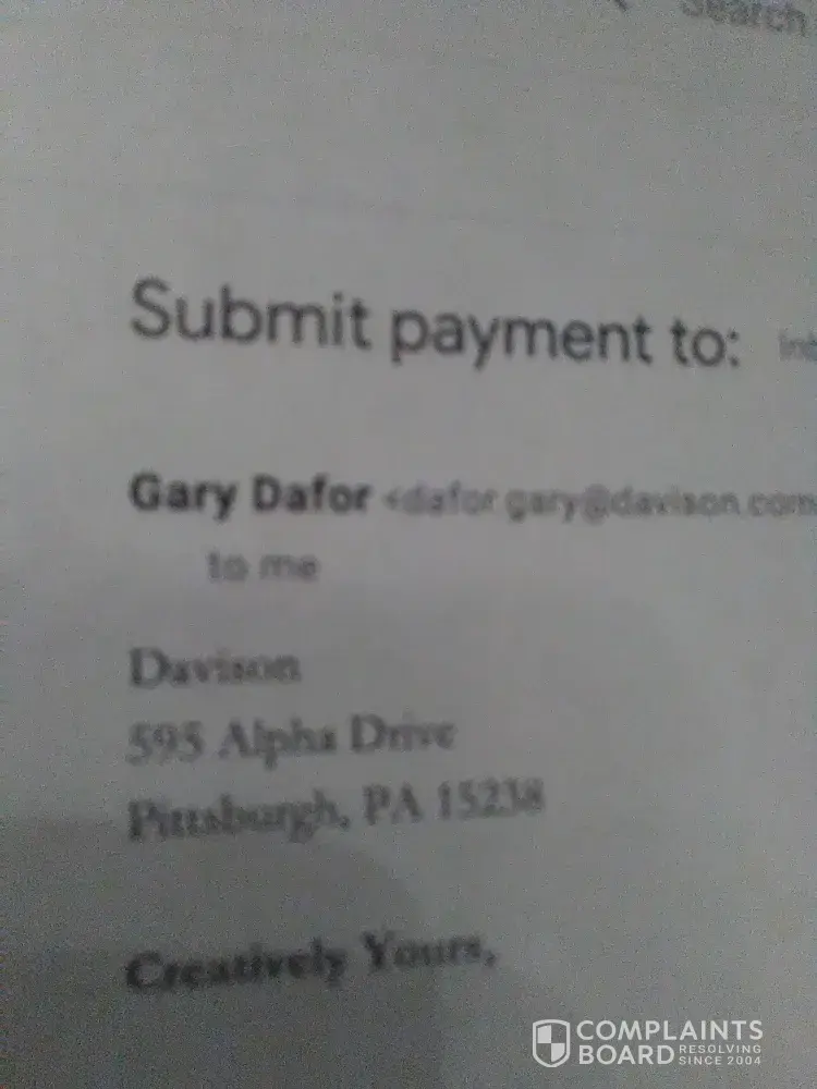 My name is Les Molina, and I have been scammed by Davison. They are very pushy people, they lie, they tell you what you want to hear, till they get your money.in my case, they told me that I had a very good Idea and that they wanted to work with me. They said that they have great contacts with big companies and that they would present my invention to the Clorox Company. I said to them why the Clorox Company, they deal with Chemicals, my invention is a tool for washing windows. I told them that I would rather approach a company like "Johnson and Johnson" because they own the Windex Brand. Johnson & Johnson and or Windex would be the route to go with for my invention and or to target as a prospect company to buy my invention, not the Clorox Corporation. Any how they keep saying that there was a problem with my idea, but they could never tell me what the problem was. We got as far as the rendering stag as they would put it. And when they sent me a rendering (picture) of my idea, I was literally sick to my stomach. I called my point of contact there at Davison, and I yelled at him, I said this doesn't even look like my idea, it couldn't even do what my idea was capable of. I told them to F — k Off and I never answered a phone call from them for a long time. They keep calling and calling leaving me messages after messages. After several years went by I got a call from someone at Davison saying that my point of contact was out on sick leave and he took over all of that persons clients and he wanted to continue working with me to get my product to market, but they needed to finish collecting money from me, they wanted a another $5, 000 dollars. I had already given them $7900 in the beginning and was not going to give them another penny. The new person that was calling me kept pushing and pushing me to finish what they started. But this person could not find the original contract that was drafted up and signed by my first contact. I still have that original contract I never signed it or even sent it back to them. I told them that we agreed on $7, 900 and that's what I sent them. I would like to be part of a Class Action Lawsuit against them. I don't know how to go about that. My email address is [protected]@hotmail.com and my cell is [protected]