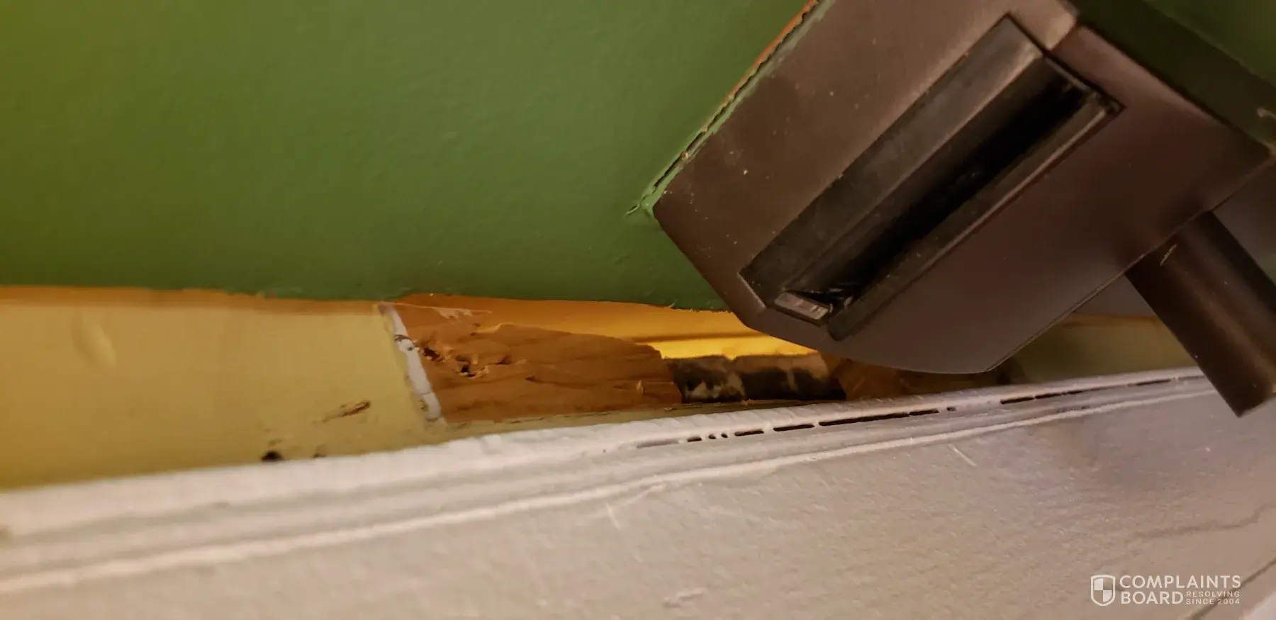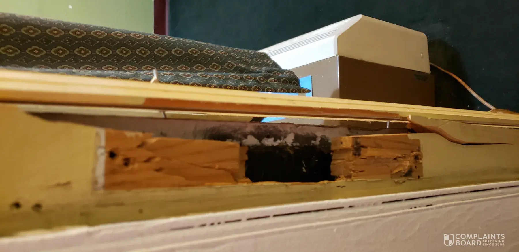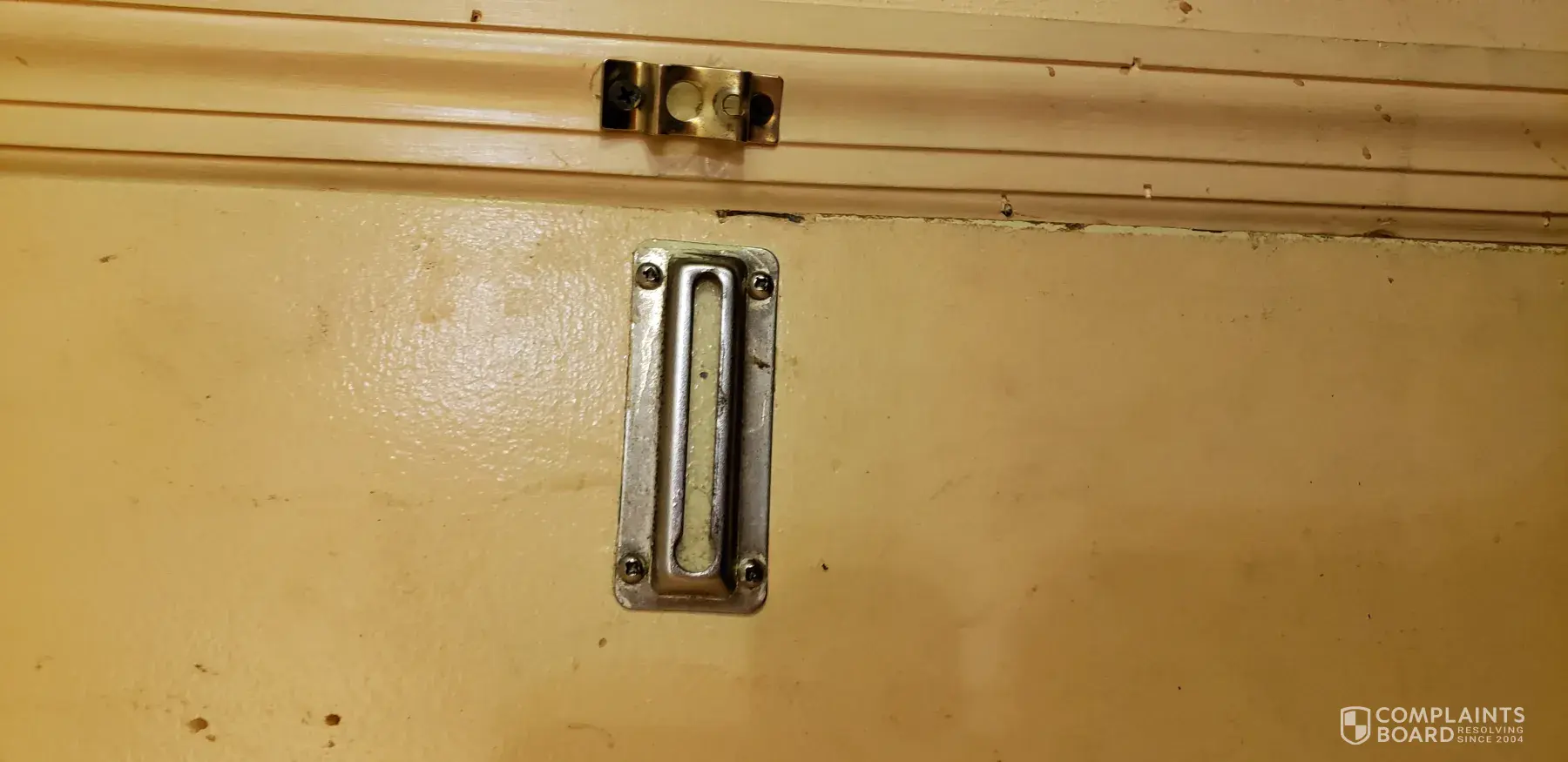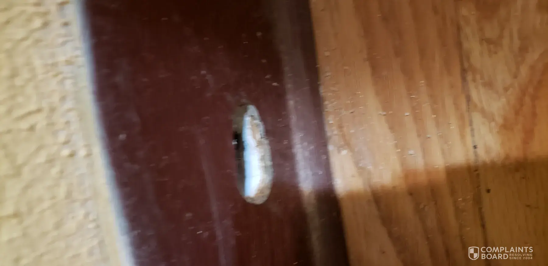 I stayed at Days Inn, Terre Haute, Indiana on April 13 for 1 night. Door wouldn't securely lock since there was a huge hole where it should have closed at. Inside door frame pulled away from the wall . The chain lock didn't have a chain to lock. Anyone could bust thru my door (which I tried and succeeded). I put the chair/table against the door to try to secure my room for the night. There was a 3" hole big enough for a rat to fit into in the baseboard which I stuffed with a towel. Half the bed was collapsed. AC didn't work and was moldy and filthy. It was a smoke free room but smelled smoky. Carpet was filthy. I went back to speak with check-in lady after seeing the room to complain and she said they don't usually rent this room to anyone but this is what they gave me. Right after me, a man checked in and was given a "themed" suite at regular price because there were no other rooms left. They didn't offer this option to me. I complained again the next day to the manager but Mr. V would only give me a $21 refund on an $84 room. I asked for a full refund and he made me feel like this was my fault, not his or his hotel. And that they were going to remodel soon so come back next year. This room wasn't even worth $10! It was filthy, unsafe, and dangerous. I will never stay at Days Inn again. It said it was a 3-star hotel. This was a "0" star hotel. (My apologies these pictures are sideways.) Attached are pics of lock/door frame/door jam, chain lock with no chain, dirty carpeting, big hole in baseboard, filthy moldy AC). This was just disgusting. No other hotels were available since there was a tournament in town. Reservation #[protected] .