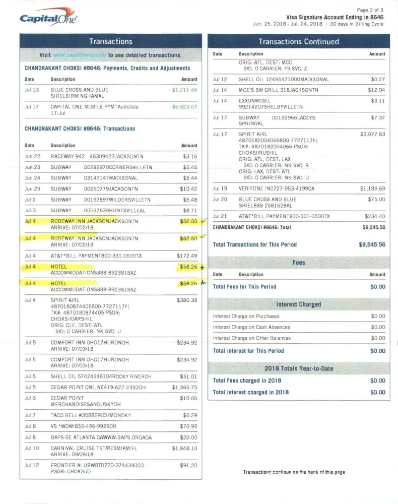 So now I have charges for two rooms from Hotel Accommodations for Days Inn, which I did not stay at, and charges for two rooms from Rodeway Inn where I actually stayed at. So, I am contesting that since a Days Inn did not actually exist, I did not receive any services from a Days Inn. I actually received services from Rodeway Inn who actually charged my card and I am not contesting those charges.