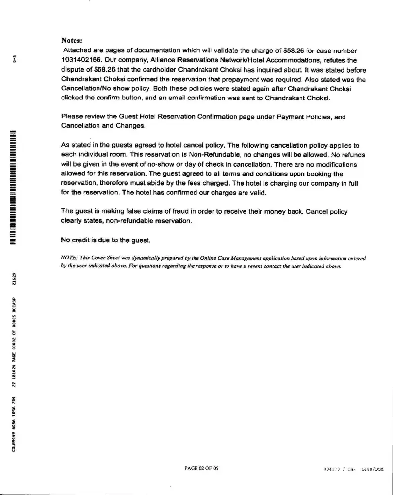 So I dispute the charges that Hotel Accommodation charged for Days Inn. And guess what? The reply from Hotel Accommodation!