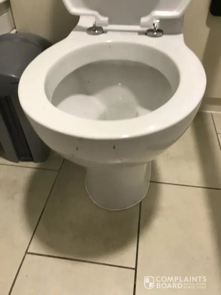 Then to add insult to injury, when we had finished our breakfast I need to us the disabled toilet, I could not believe the state of it, see the photo of it, I went to your reception & reported it to the same receptionist that had treated us so rudely the night we arrived & I explained about it been covered in caked on tish to which she clearly did not understand what tish was so I had to explain to her that it was pooh, all she could do & say was we have no cleaning staff working today she did not offer myself another toilet to us or even come out from behind the reception desk to look at it, your standards for a people like us are a disgrace as you clearly think that disabled people & there partners will put up with anything, we wont put up with anything or more to the point why should we, we paid the same money for our room as everyone else, before I had my foot amputated I spent 35 + years in construction both as a time served City & Guild Joiner to a Site/Contacts/Projects Manager building hotels, Schools & Hospitals & I have never treated any one in this ill mannered way as your staff treated us & keep a room in such poor state of maintenance or a toilet so dirty,