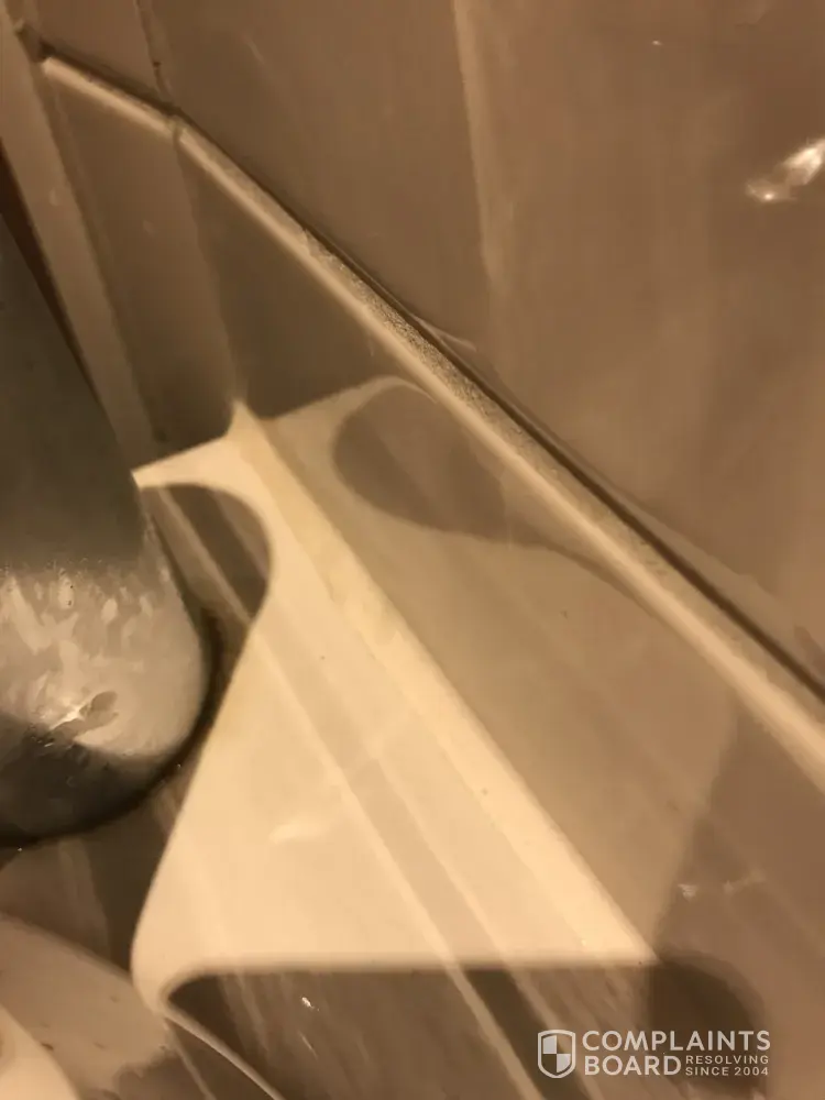 All we both wanted to do was to have a shower & come round, have a nice drink & go to sleep, the wet room was very dirty as you can see with the pictures I am attaching to this email, the drop down seat had got 2 damaged slats on it, the pull down hand rail to the shower took us both to pull it down it had clearly not being maintained every & it had never being cleaned on joints, the shower curtain rail was broken hanging off the ceiling bracket, the wash had basins were both not cleaned correctly including the over flow being black bright with dirt, when I did managed to sit on the shower seat the water in the shower would not get hotter than Luke warm & the pressure was rubbish & then to top