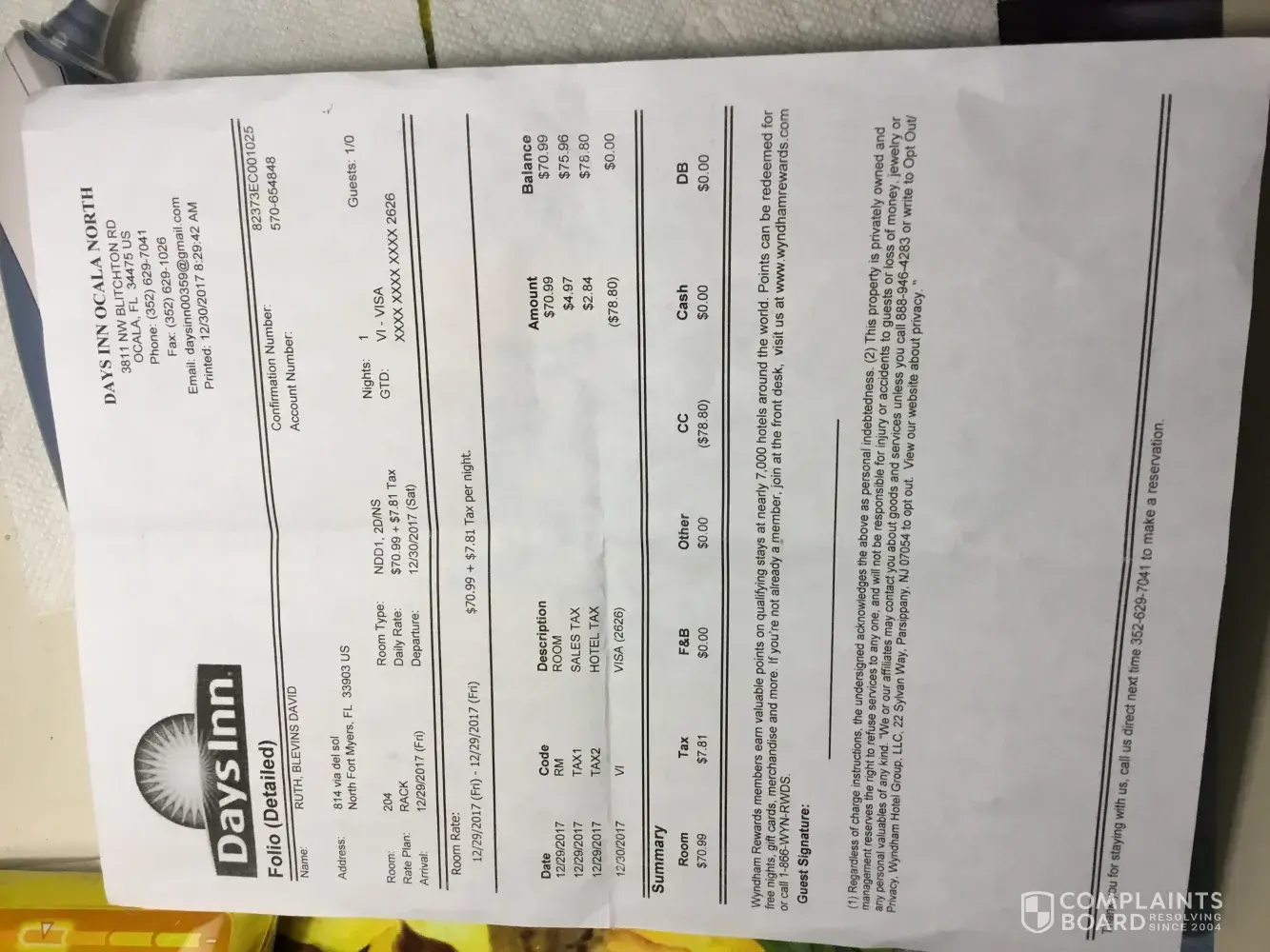 I checked into the hotel: days inn, 1850 str. 23 north, wayne, nj 07470 about 7:00pm on the night of december 2, 2018 under a clc check-in, reservation was under gerald biscoe.