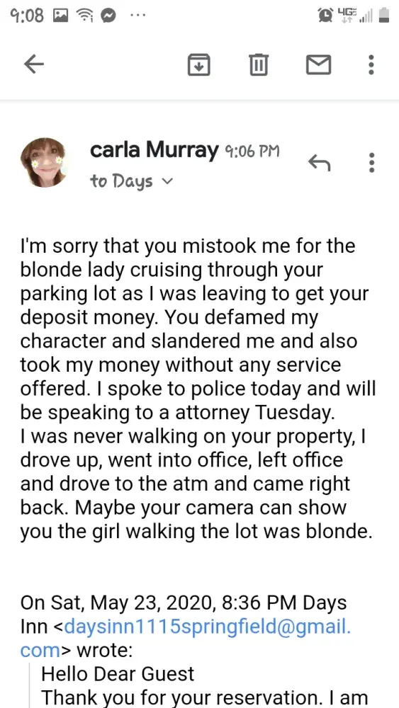 Days Inn Slander. Defamation of character. False facts. I want a refund