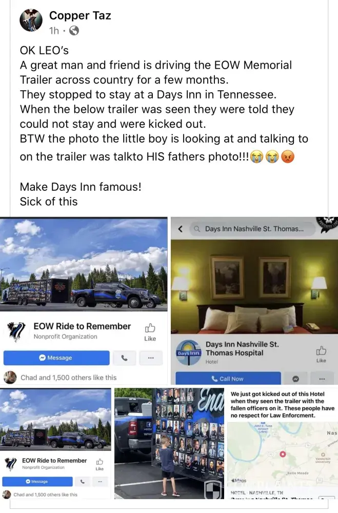 The Days Inn in Nashville Tennessee violated an American citizen's constitutional rights and may have left you open to an enormous lawsuit. I am going to make sure the depiction below is shown to as many media outlets as possible. Please contact the person in the picture below to make this situation right, I will be taking the viral photos to Fox News next.