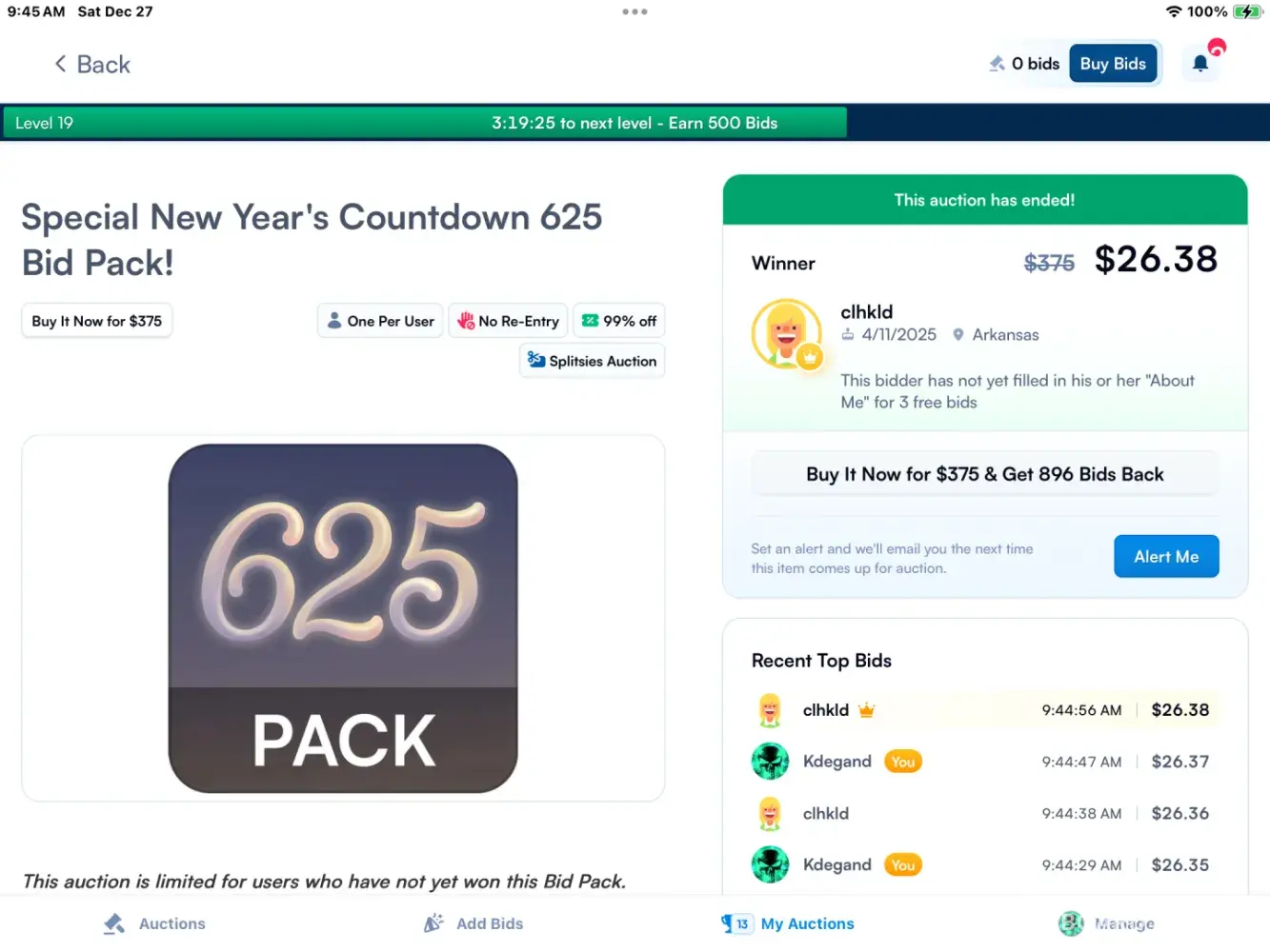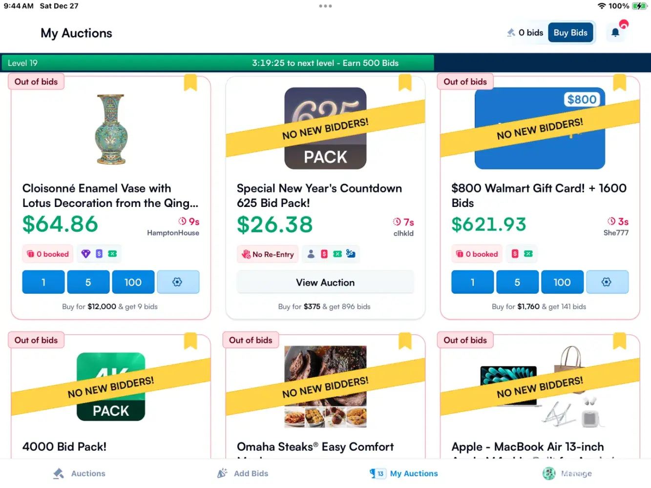But when I clicked to go back to the auction after buying more bids. It said I lost. I went nuts, I was like no way did I quit, what just happened?! Listen, I've been on since 2013. I've won
