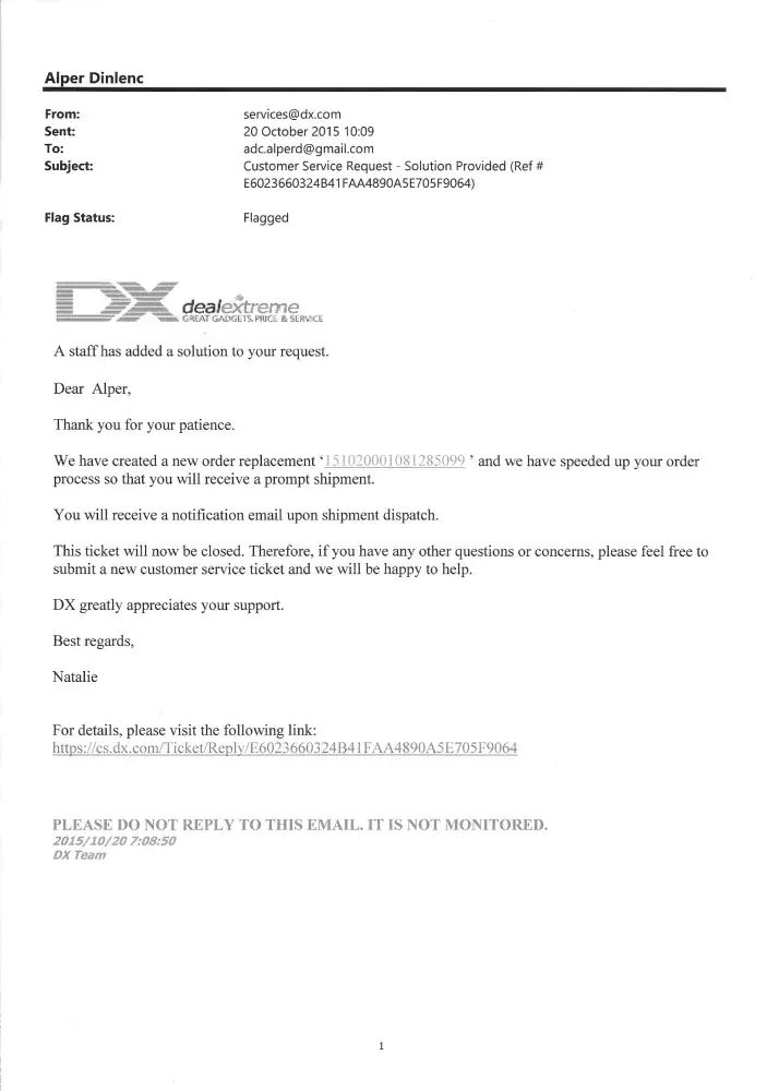 This company has nothing but horrible service. I made an order and purchased 8 things from DX. It was back in November! Well, it is January now and I received only 3 items. Only later I discovered that DX sent me invalid tracking numbers for the rest 5 items. I contacted their customer service and asked about where the rest part of my order was. But the only thing they can do good is making up all sorts of excuses. They did not send me anything and refused giving back my money. Luckily I paid via PayPal so I got my money back. DX is a very dishonest company.