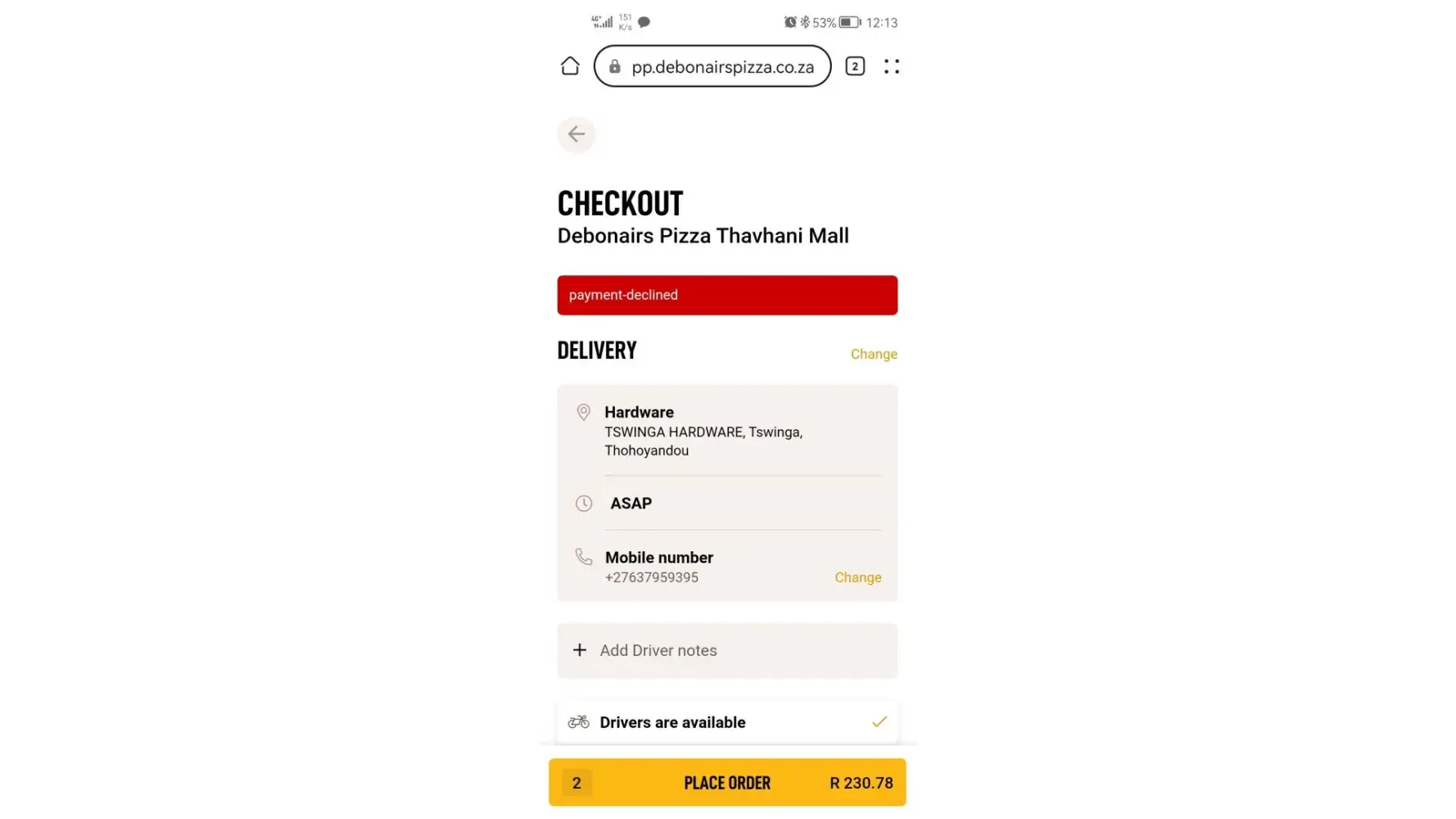 This is the second time where I pay for a pizza and the payment gets declined yet, the money in my account appears to have paid for the pizza. Can you please reverse my money because in both instances it says payment declined on your app. Now I have R95 and R209 stuck. The phone number I used to order is [protected]. Please assist