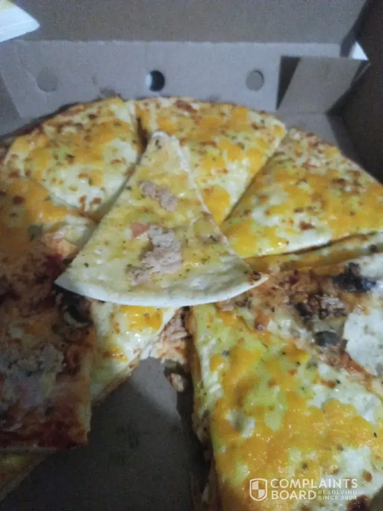 I am informed by the complaints department that the above complaint is unlikely to attract attention because there are not enough words and yet I would have thought that the fact that there is less than 50% of the pizza that complies with their advertisement would be enough to attract attention so perhaps attention is what they are striving to avoid while delivering an unbelievably inaccurate description of the product they guarantee to offer. Is this enough words for such a rubbish pizza?