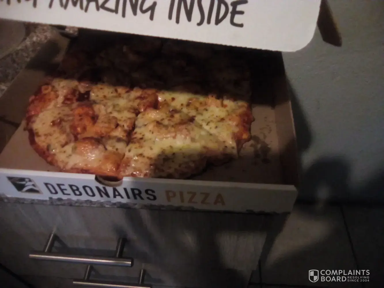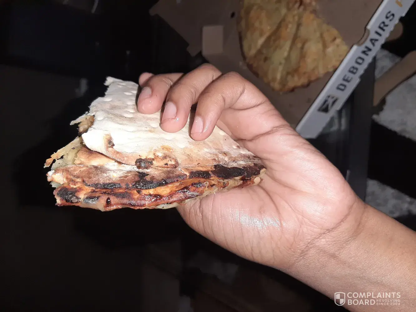 Debonairs disappointed me . I went to protea glen mall to buy pizza.. when i arrive home pizza was burnt and not edible. I'm super angry. Sort this out. I expect normal service like any other customer. Below is the picture of the burnt Pizza i got. I beyond agitated, this Pizza is completely burnt, utter [censored] this. 🤞