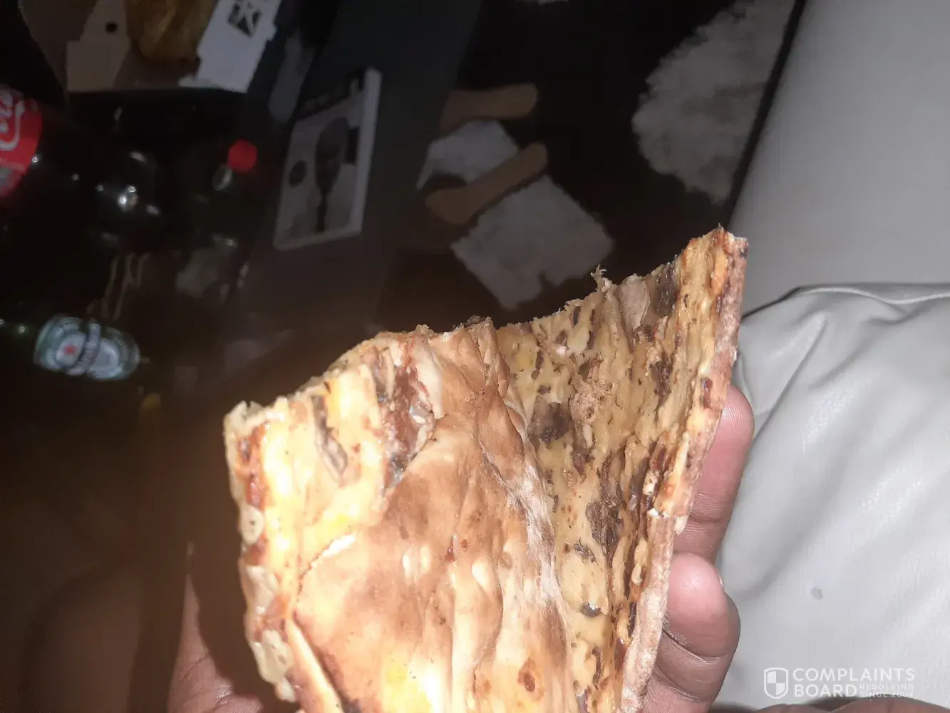 am complaining about the service and pizza that was handed to me