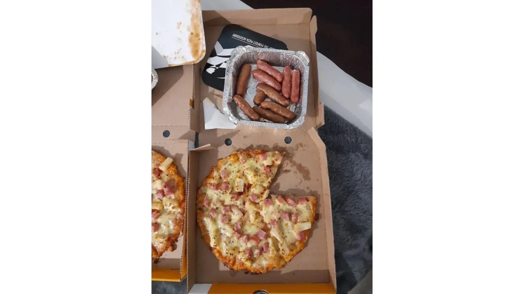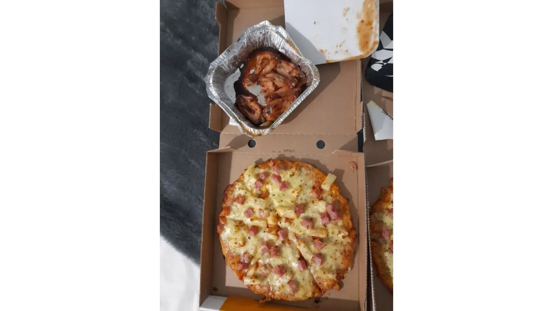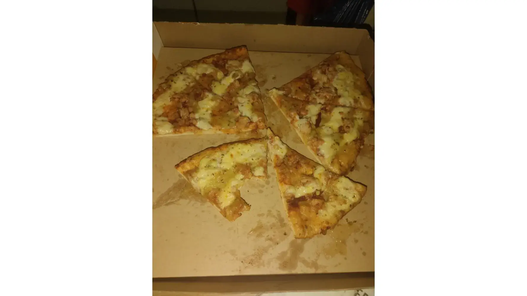We always order from dowerglen debonairs this time was horrific. delivery time to be 5:30 in the evening 15:00 arrived my son loves the debonairs pizza his 5 years of age takes a bite and starts jumping around fanning his mouth saying it's burning him so I still can't it's your favorite debonairs pizza so I had a bit o my word there's so much mayonnaise on their my lips are still burning and it is now 5:45. You taste none of the debonairs sauce at all so overpowering with just mayonnaise. A serious we order the debonairs pizza a whole pizza is finished within half an hour like you can see I still have more than one and a half left.