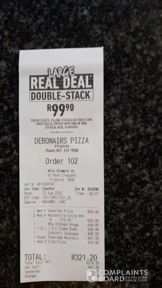 Debonairs Pizza Abuse of service, overcharging and giving incorrect meals